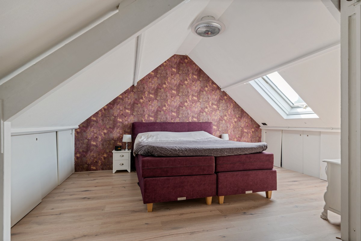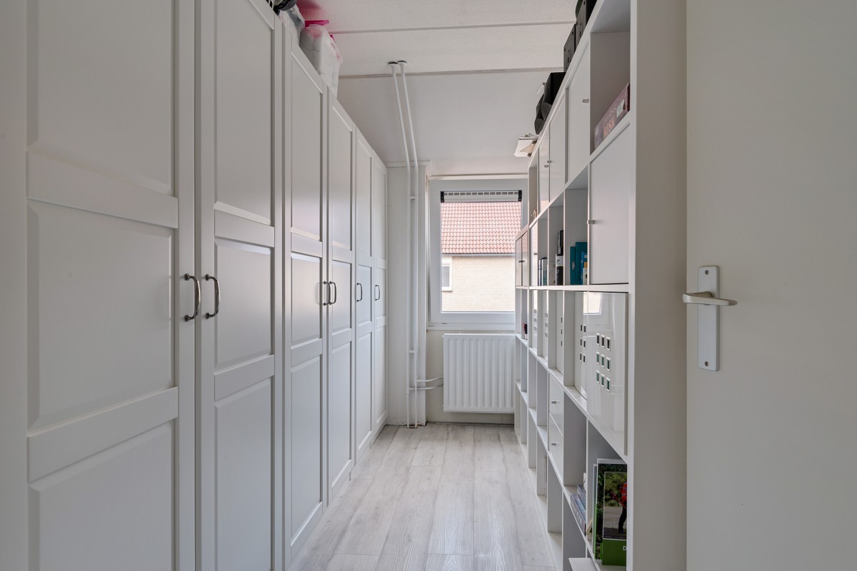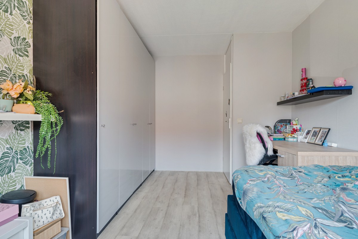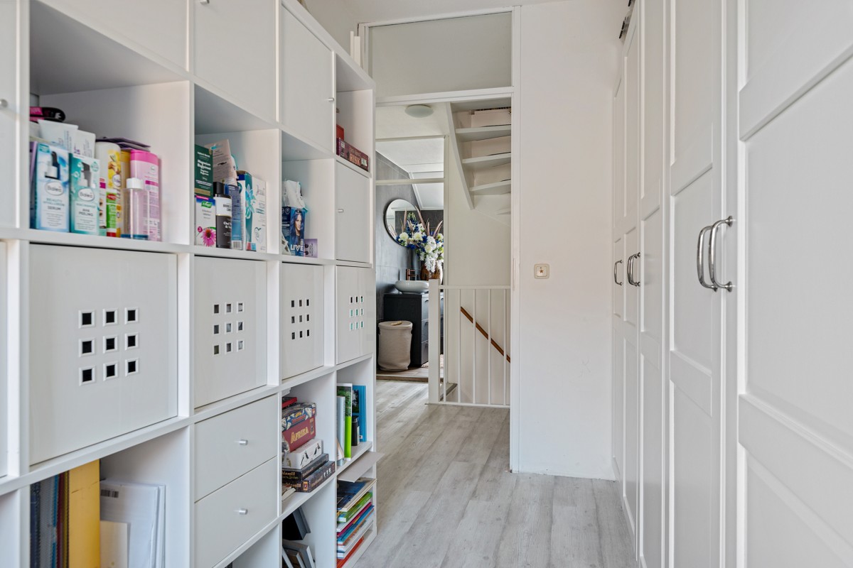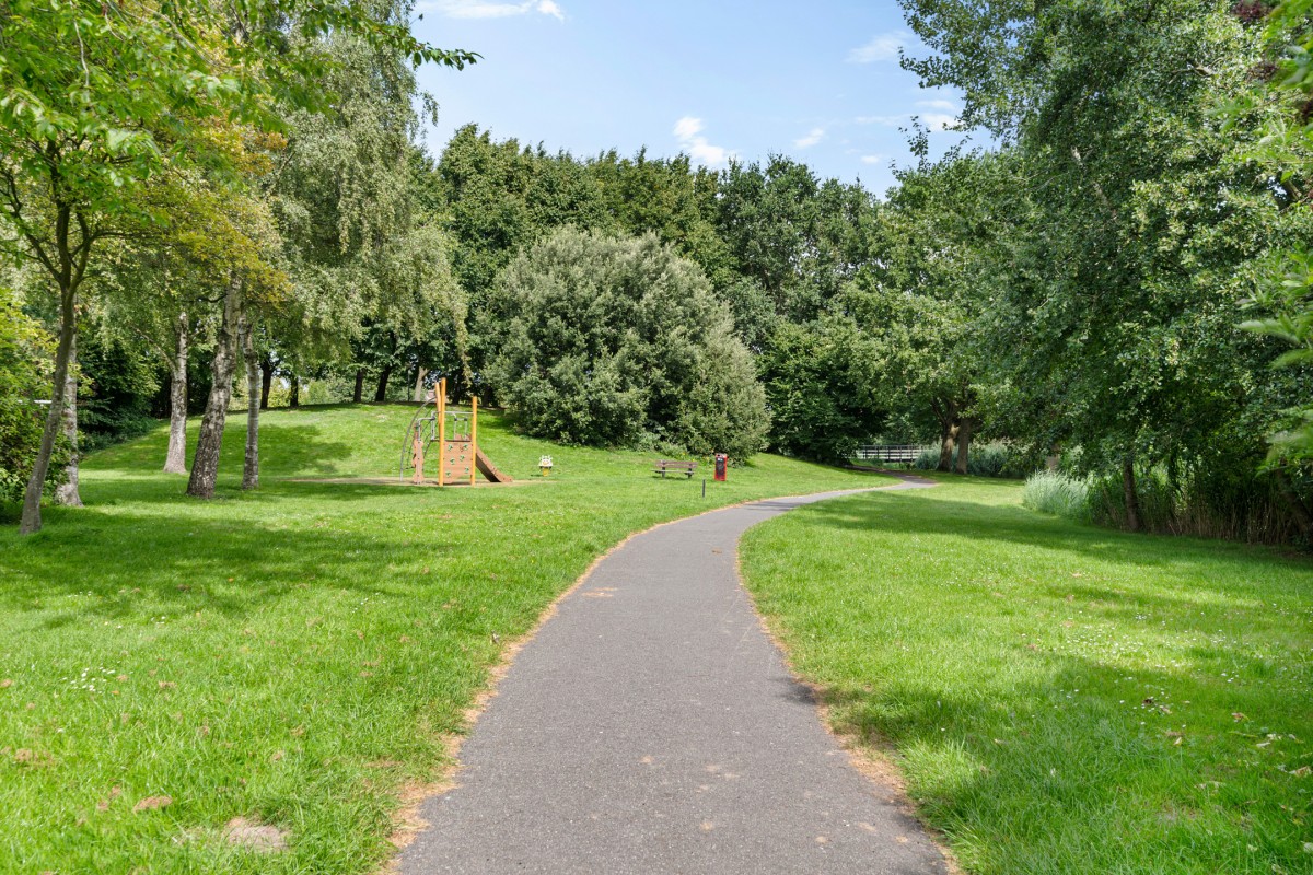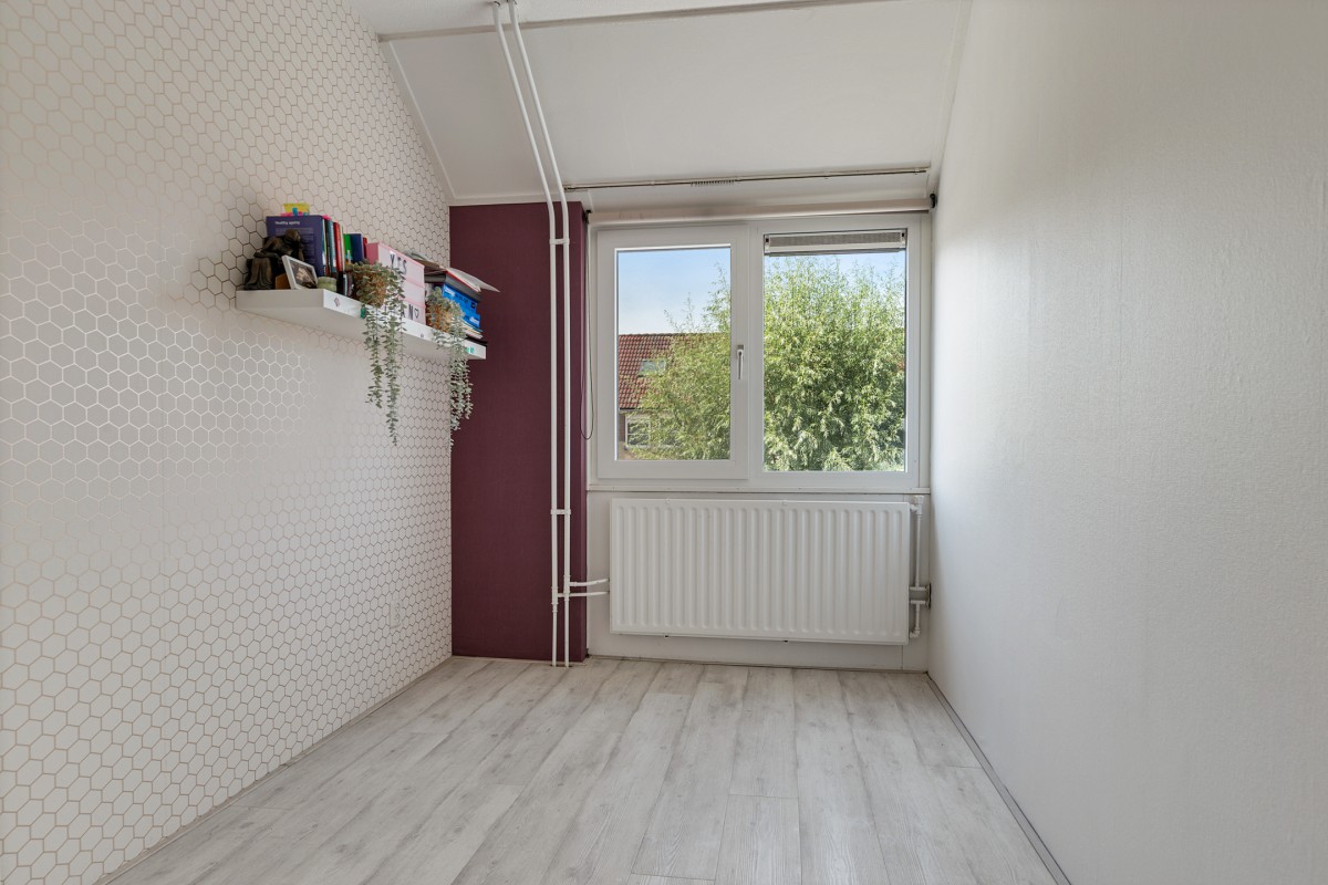 Delightful semi-detached house with a garage, on-site parking, a living room with a cozy wood-burning stove, a kitchen with built-in appliances, 4 bedrooms, a modern bathroom (2025), a west-facing covered back garden, Energy Label A, and 13 solar panels.