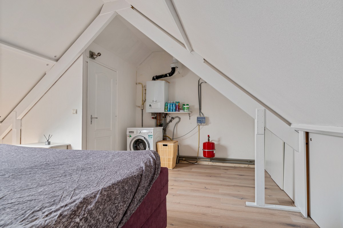 Landing with connections for the washing machine, dryer, mechanical ventilation, central heating system, inverter for the solar panels, and access to the fourth bedroom. There is ample storage space behind the knee walls.