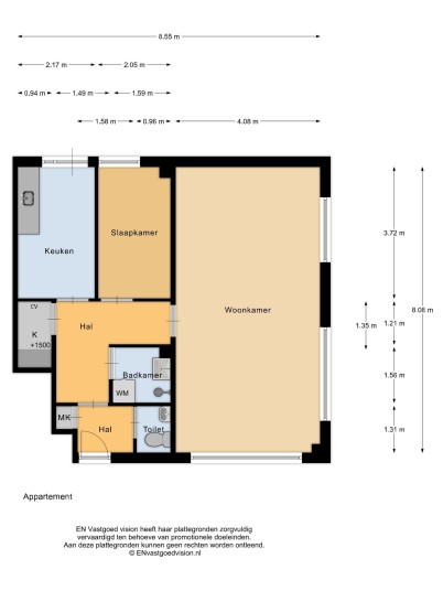 - Living area: 65.5 m² (measured in accordance with NEN2580 certificate);
