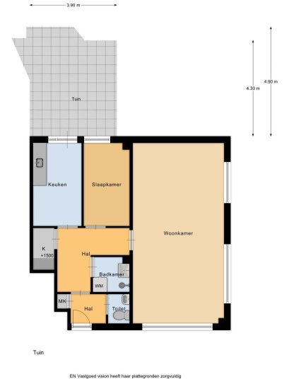 Via the shared rear pathway, you can reach the external storage unit of 4.8 m², measured in accordance with the NEN2580 measurement certificate.