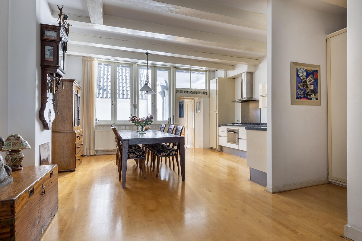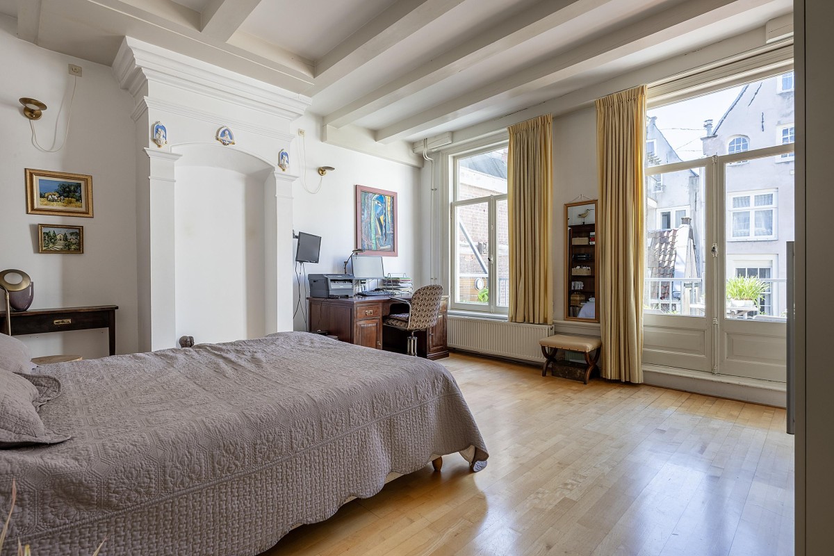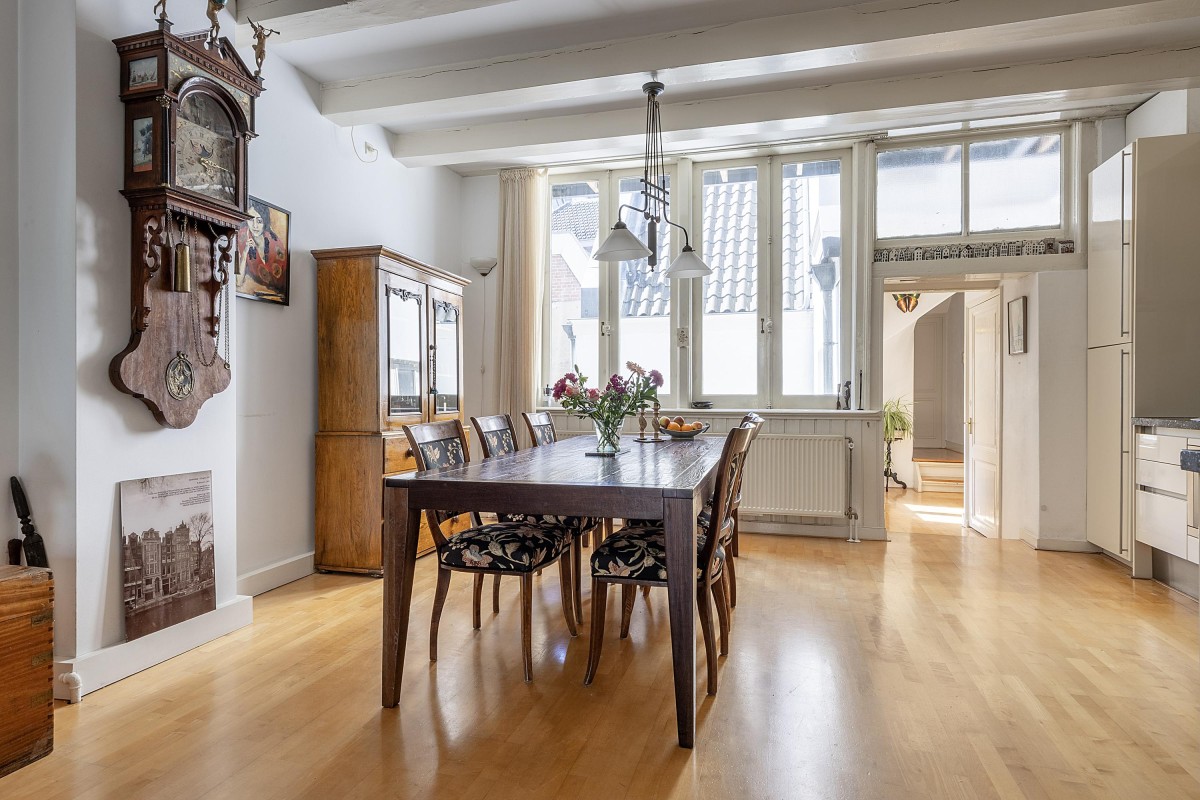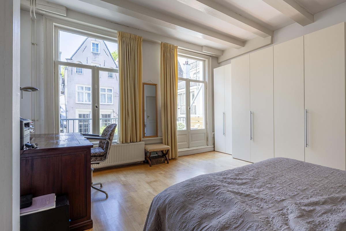 Lees verderFrom the first floor of the front house, you can enjoy a magnificent view over the canal, while the two floors in the back house provide peace and privacy – a rare combination in the city center. The classic frame façade and authentic details are a reminder of the property’s rich past. A charming place where history and modern convenience come together seamlessly.