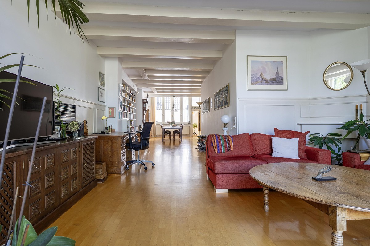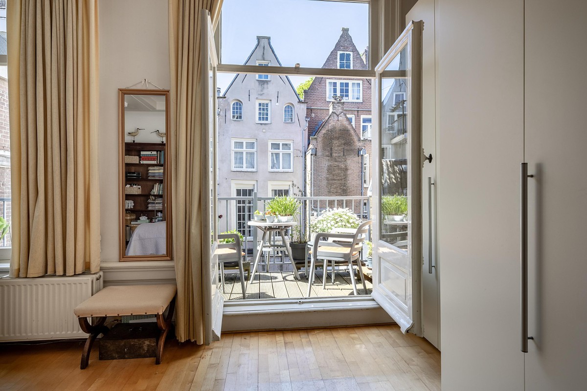 Living in the center of Amsterdam on one of the most beautiful and beloved canals the city has to offer. Located in an iconic spot in the vibrant heart of the city, this apartment offers a unique combination of historic charm and contemporary living comfort. This characterful apartment is located on the first and second floors of a beautiful municipal monument from 1730, designed by architect P.F. Laarman in neoclassical style. With a living area of approximately 136 m², located on PRIVATE LAND, the property features a spacious living room with open kitchen, two generous bedrooms in the double rear house, and a lovely west-facing balcony.