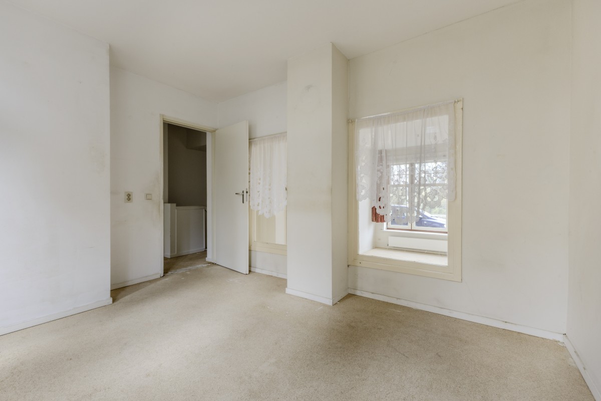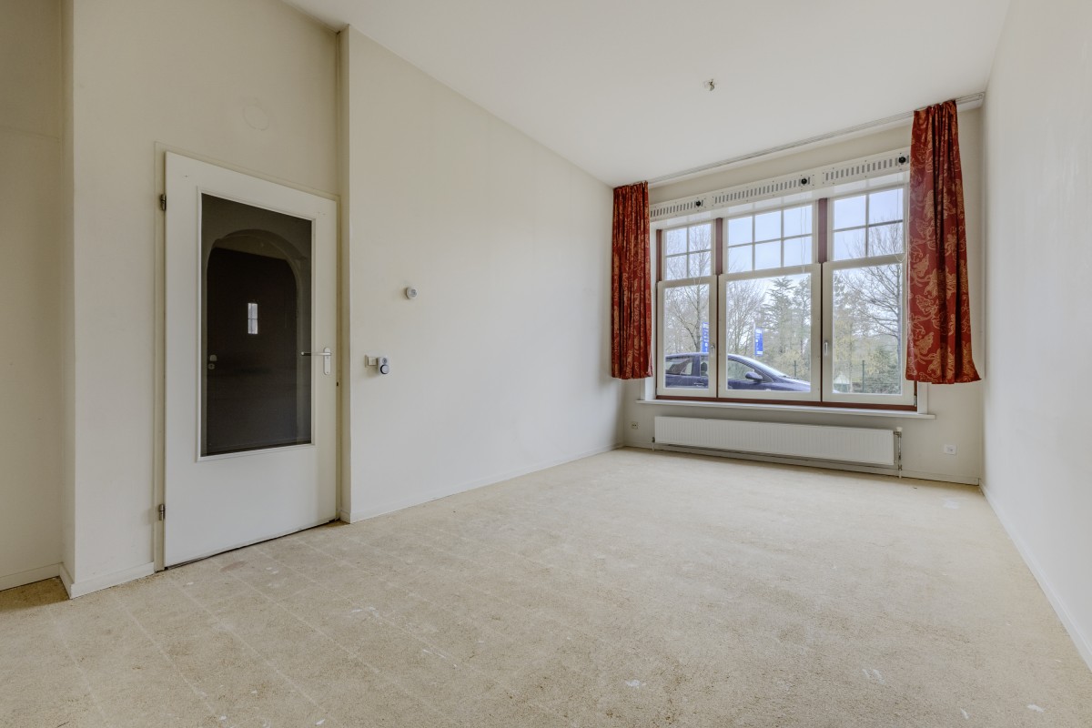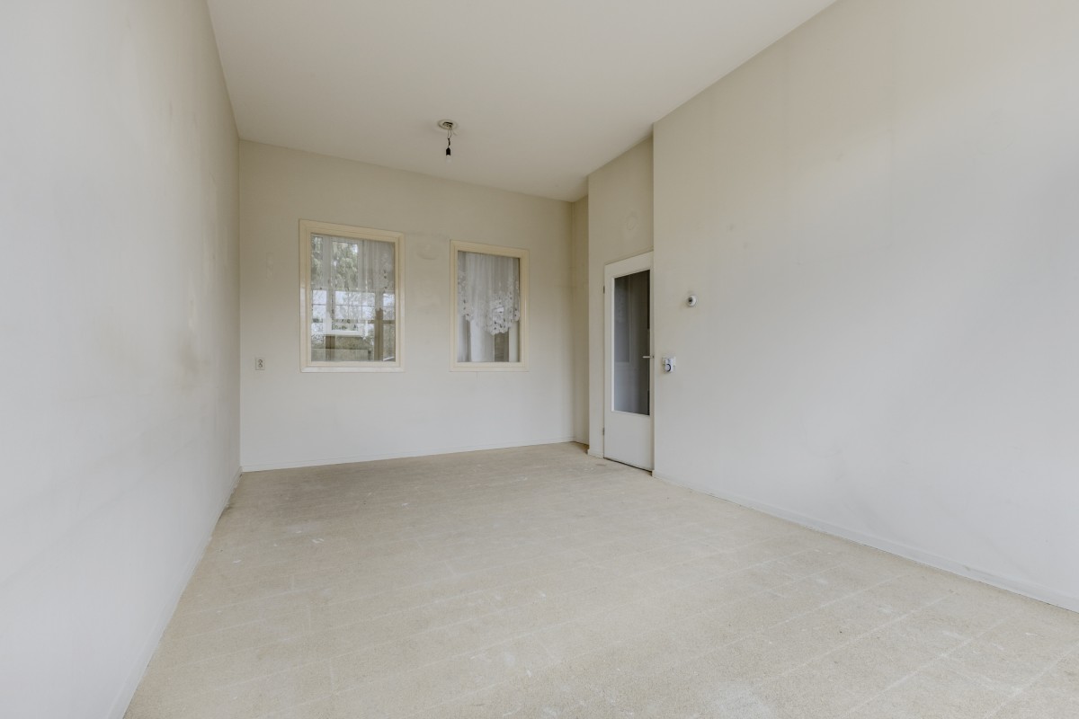 From the front door, you enter a hallway providing access to the various rooms. The hallway includes two deep cupboards, ideal for additional storage. At the front is a spacious living room. Its high ceiling of approximately 3.10 meters and large windows create a bright and airy atmosphere.
