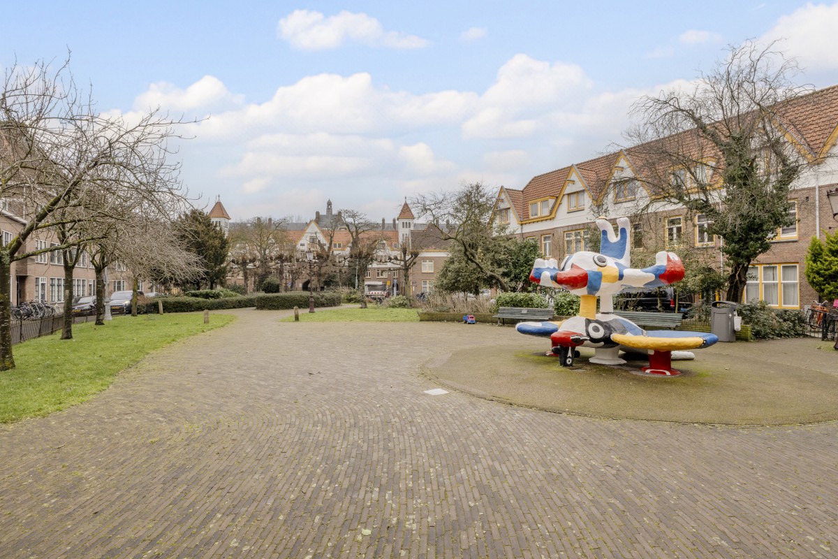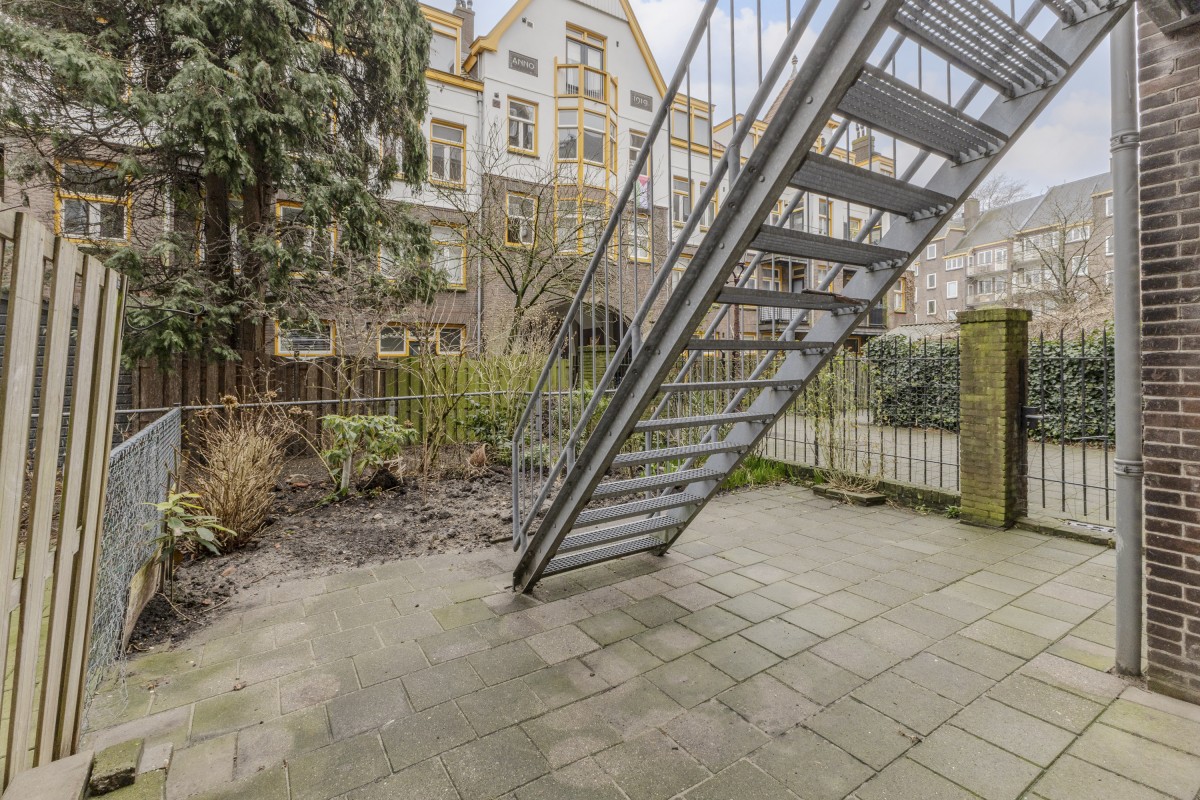 Unique double ground-floor apartment with a basement, sunny south-facing garden, balcony, and practical storage space in a prime location. Situated in the beloved Spaarndammerbuurt, beneath the characteristic Amsterdam School-style archway, with all amenities within easy reach.