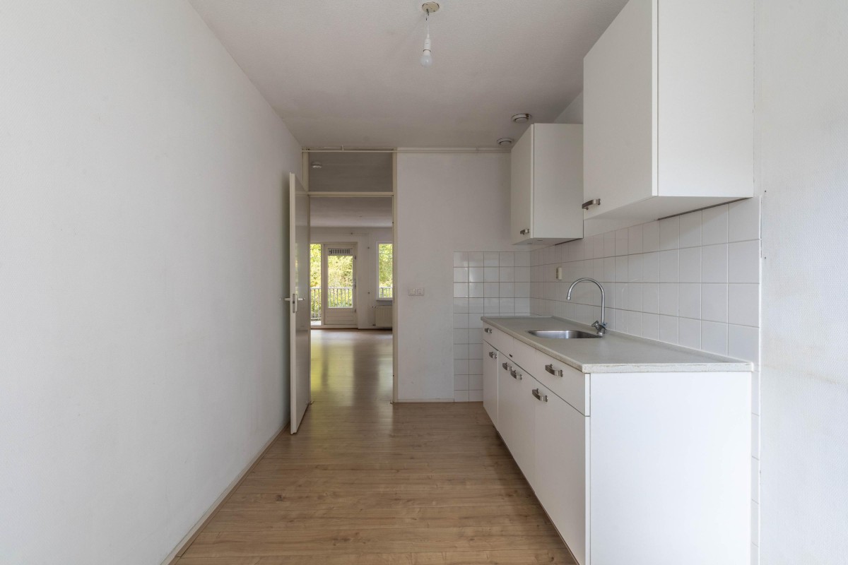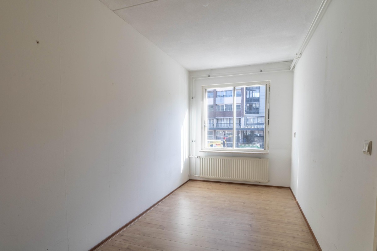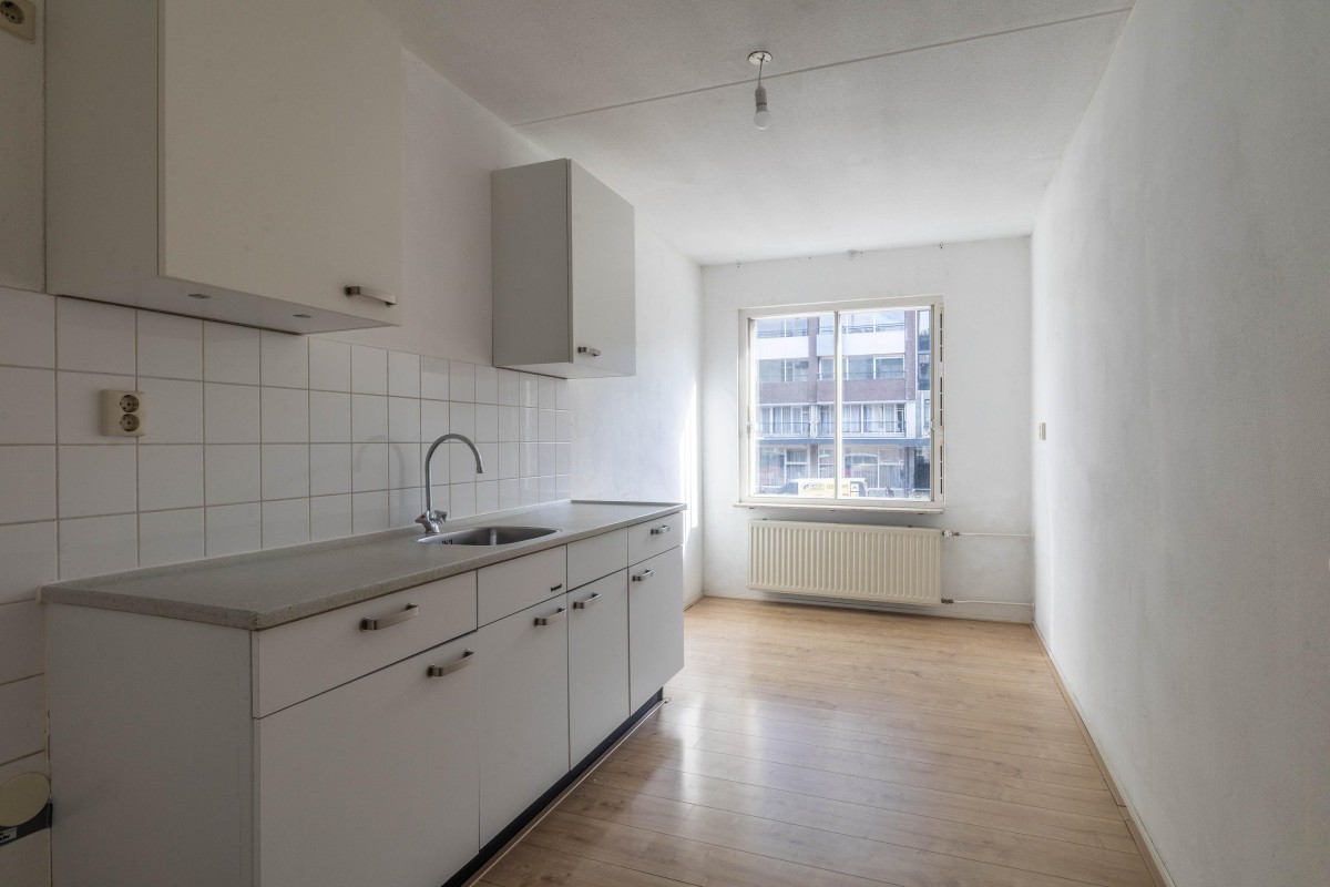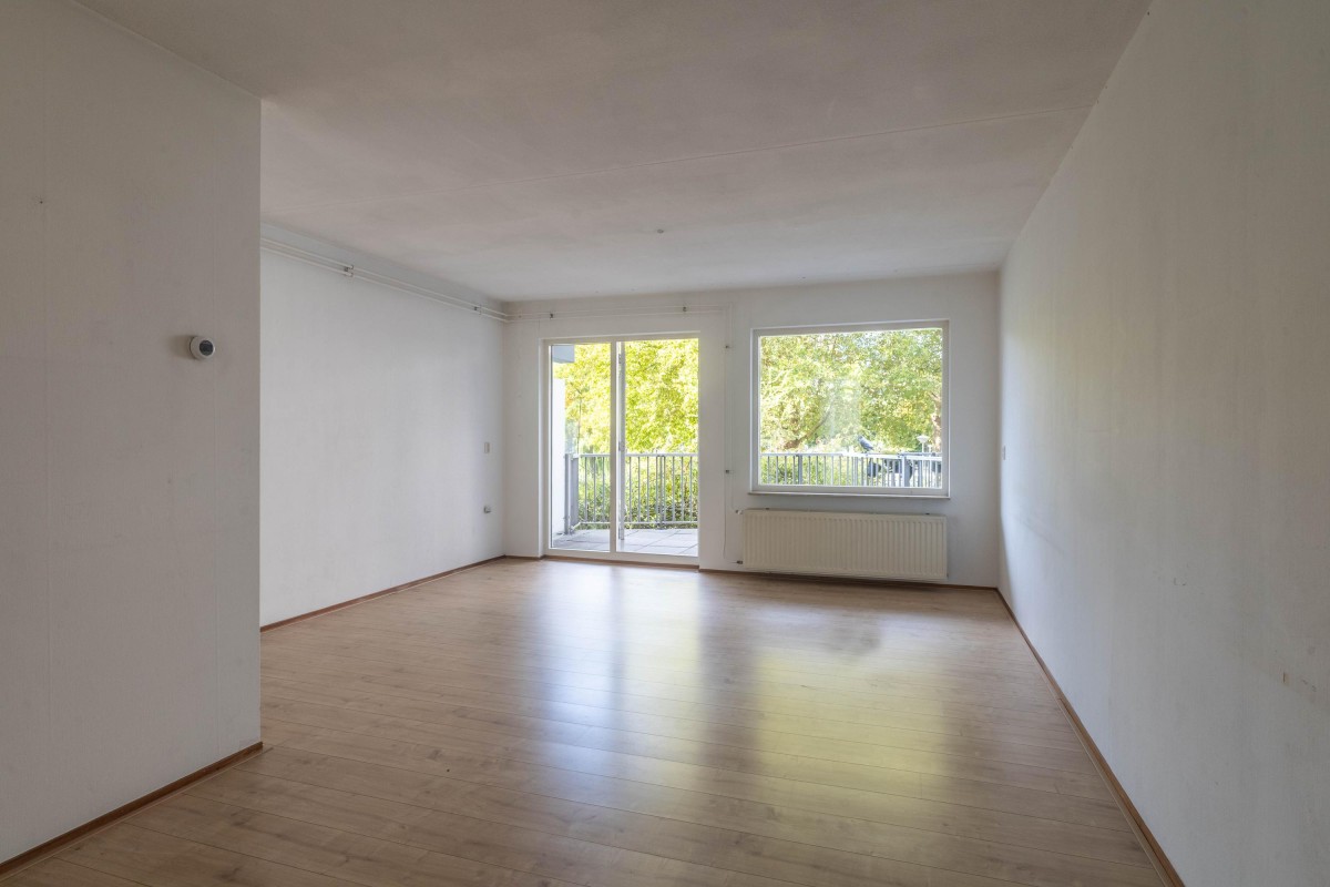 Lees verderThe kitchen is also at the front and offers the possibility to be designed and modernized according to your preference. The spacious living room of approximately 23 m² is located at the rear and features abundant natural light. From the living room, you have access to the balcony of 11.6 m², oriented to the southwest, where you can enjoy the afternoon and evening sun.