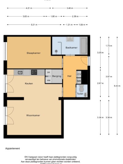 - Living area approximately 63 m² (according to NEN 2580 measurement report);