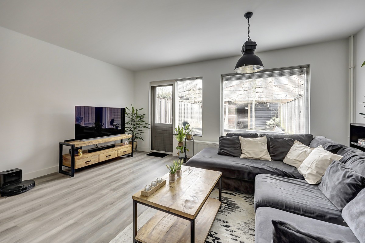 Lees verderDe straatgerichte moderne keuken heeft witte fronten en een zwart werkblad, is in een hoek opgesteld en voorzien van een ingebouwde koelkast, vrieskast, vaatwasser, 5-pits gaskookplaat, afzuigkap, combi-oven. Lichte tuingerichte living met een praktische trapkast en tuindeur naar de verzorgde achtertuin voorzien van een terras, een zonnescherm, een gazon, borders met vaste beplanting en een stenen berging met een riante overkapping en een achterom. De begane grond is afgewerkt met een fraaie pvc vloer in de woonkamer en keuken en plavuizen in de hal en toiletruimte.
