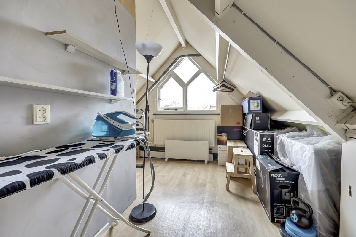 Tweede verdieping: middels een vaste trap is de voorzolder bereikbaar waar de wasmachine, droger, mechanische ventilatie unit en c.v.-ketel (Nefit) staan opgesteld. Deze verdieping is voorzien van een 4e slaapkamer met gevelraam en biedt tevens veel bergruimte.