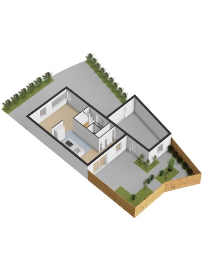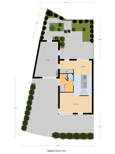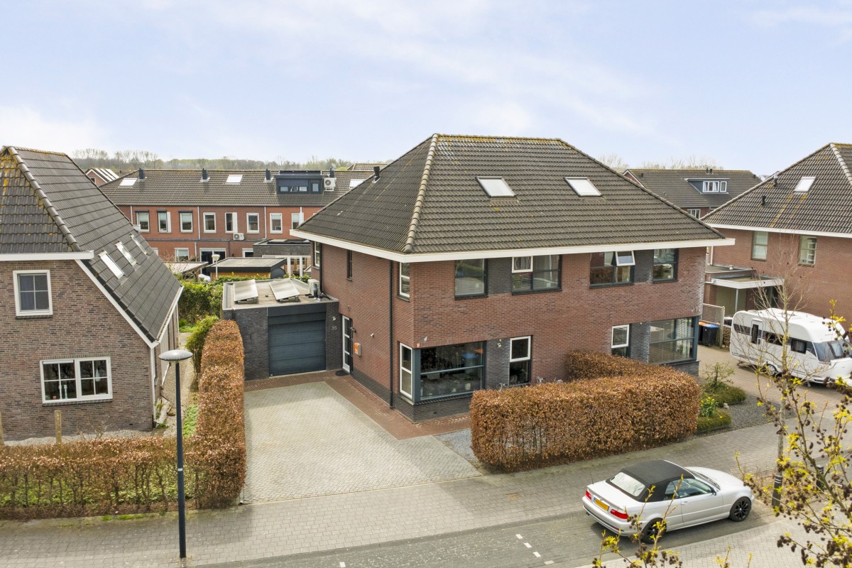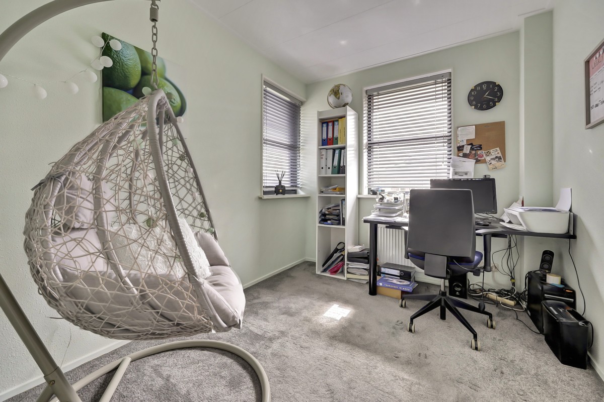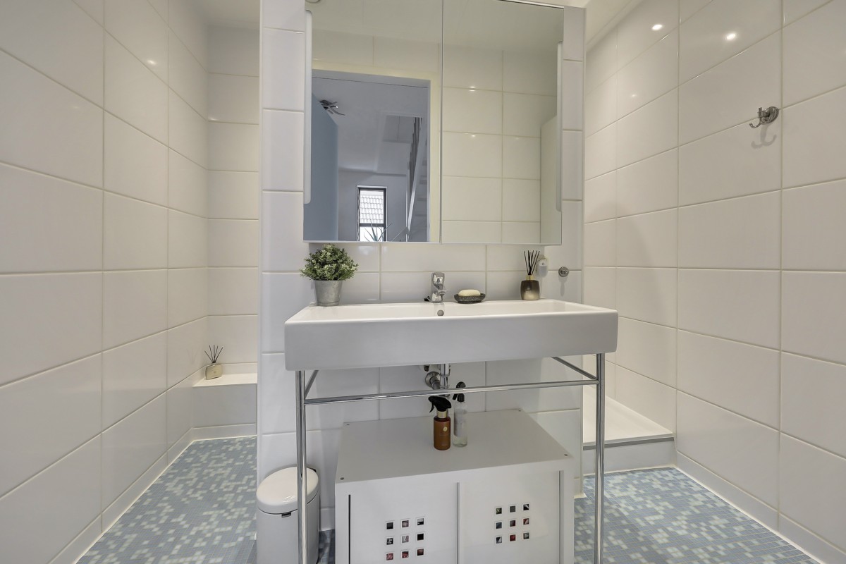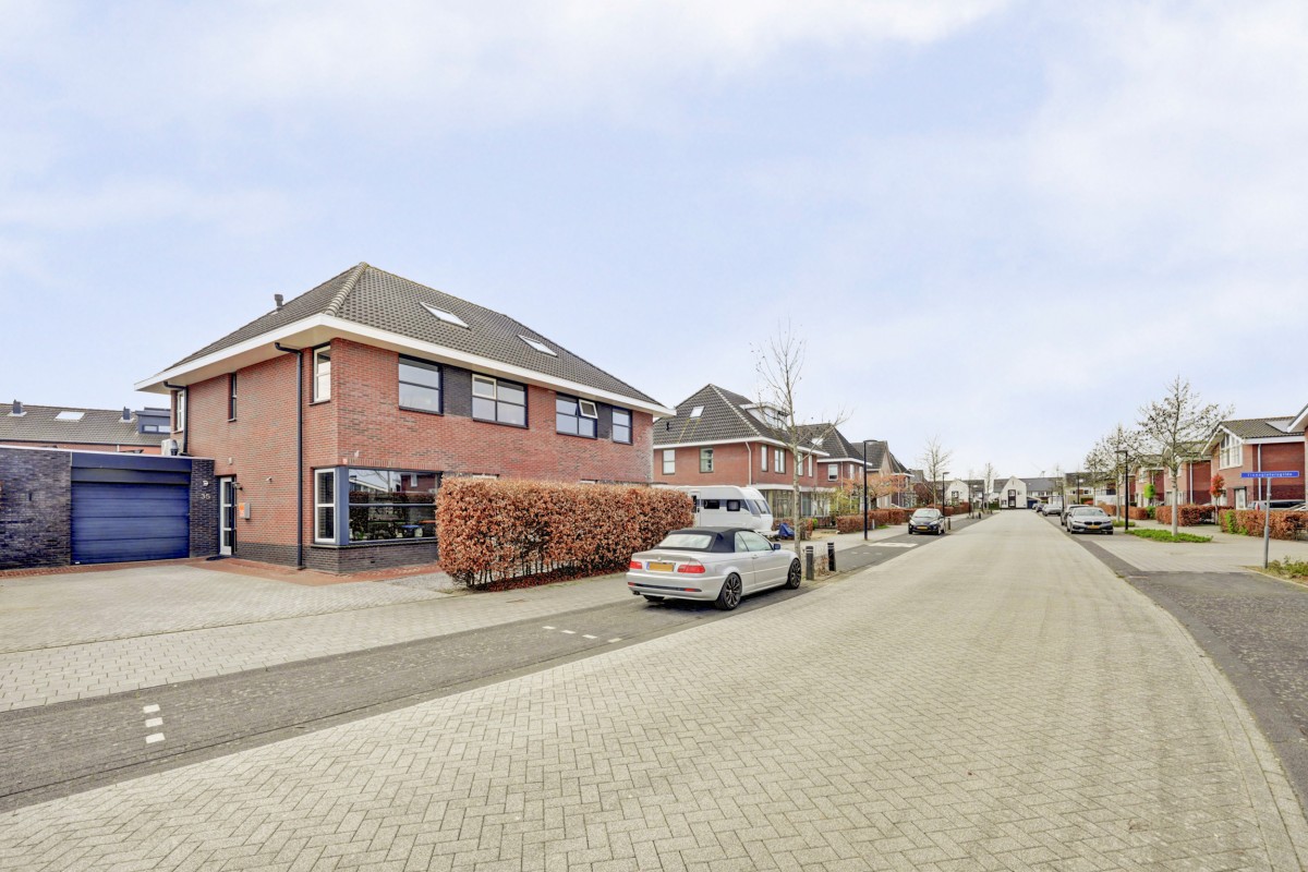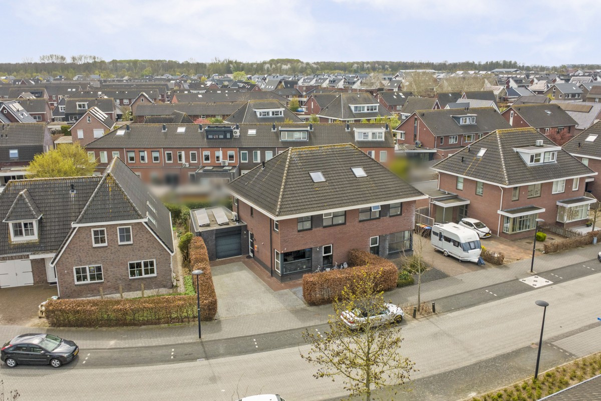 Lees verderCozy eat-in kitchen with luxury fitted kitchen equipped with built-in refrigerator, oven, dishwasher, spacious 5-burner gas hob, and stainless steel extractor hood. Around the corner, a charming coffee bar has been created, along with a built-in wardrobe with sliding doors offering ample storage space. This is also where the central heating boiler (Intergas HR) is located. The attached garage is accessible from the kitchen via an internal door. The spacious garage features a concrete floor with a new coating (2026), a utility sink with hot and cold water connections, a pedestrian door to the garden, and an electrically operated sectional door. The ground floor features a beautiful stone floor with underfloor heating and a low-maintenance wall finish. The beautifully landscaped south-facing garden can be accessed from the kitchen via sliding doors. The garden offers a terrace with an awning, various borders with perennial plants interspersed with grass and decorative gravel.