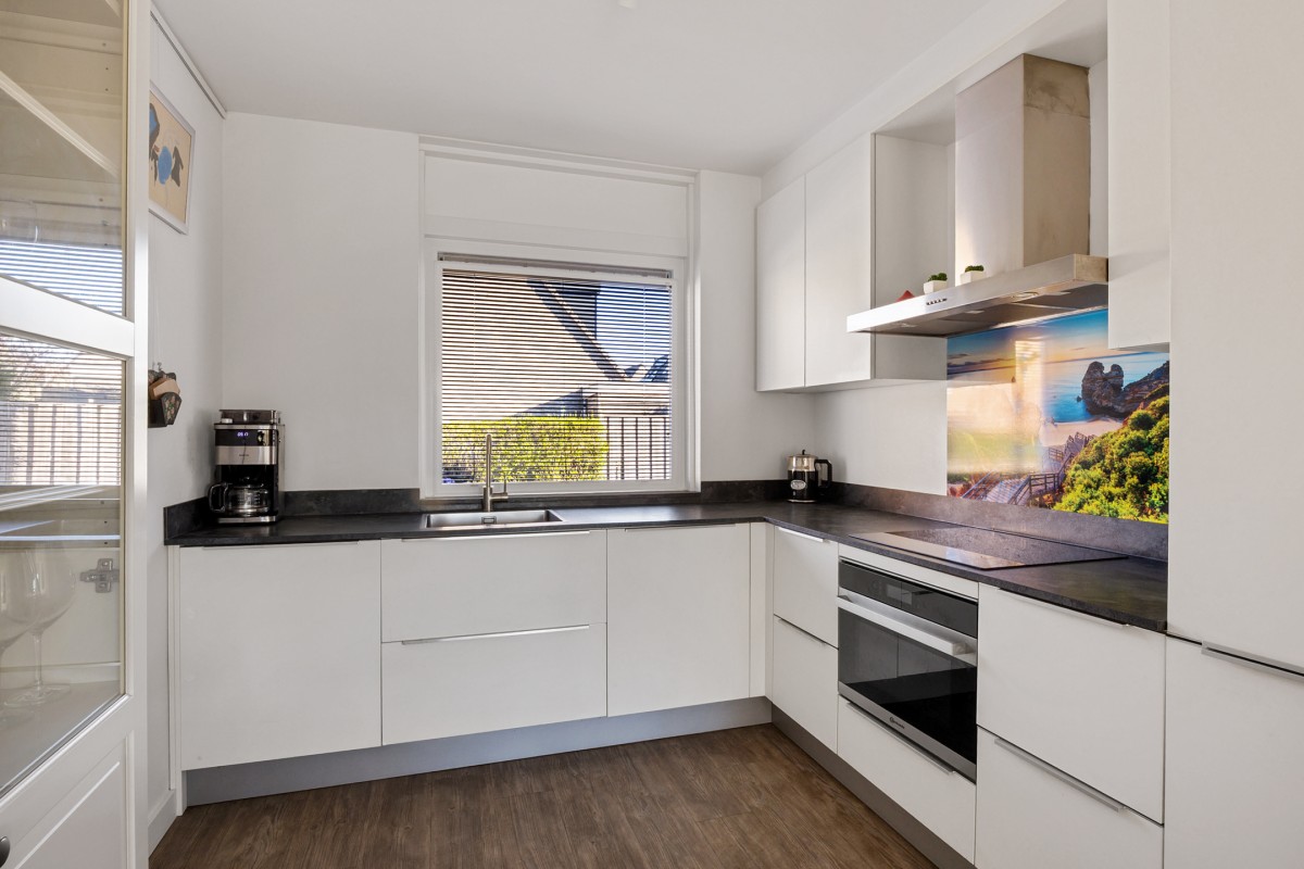 The kitchen, situated at the front of the house, benefits from plenty of natural light and is equipped with, among other things, a dishwasher, combination oven, refrigerator with freezer compartment, induction hob, and extractor hood. The ground floor features PVC flooring with underfloor heating.