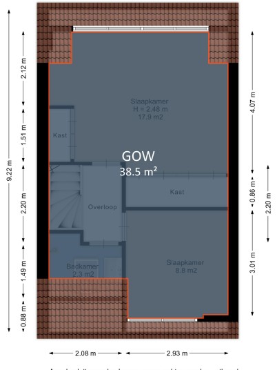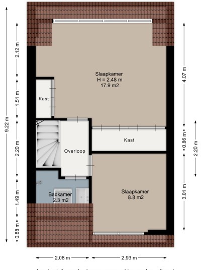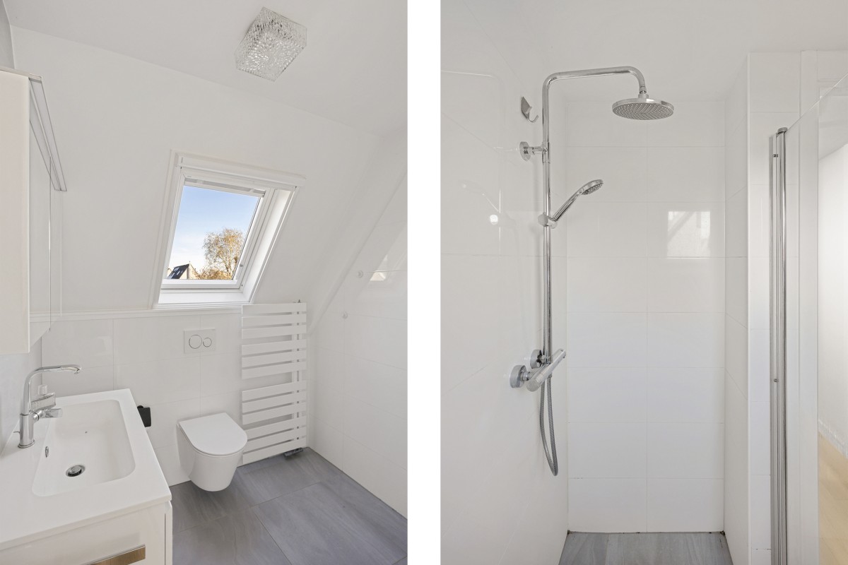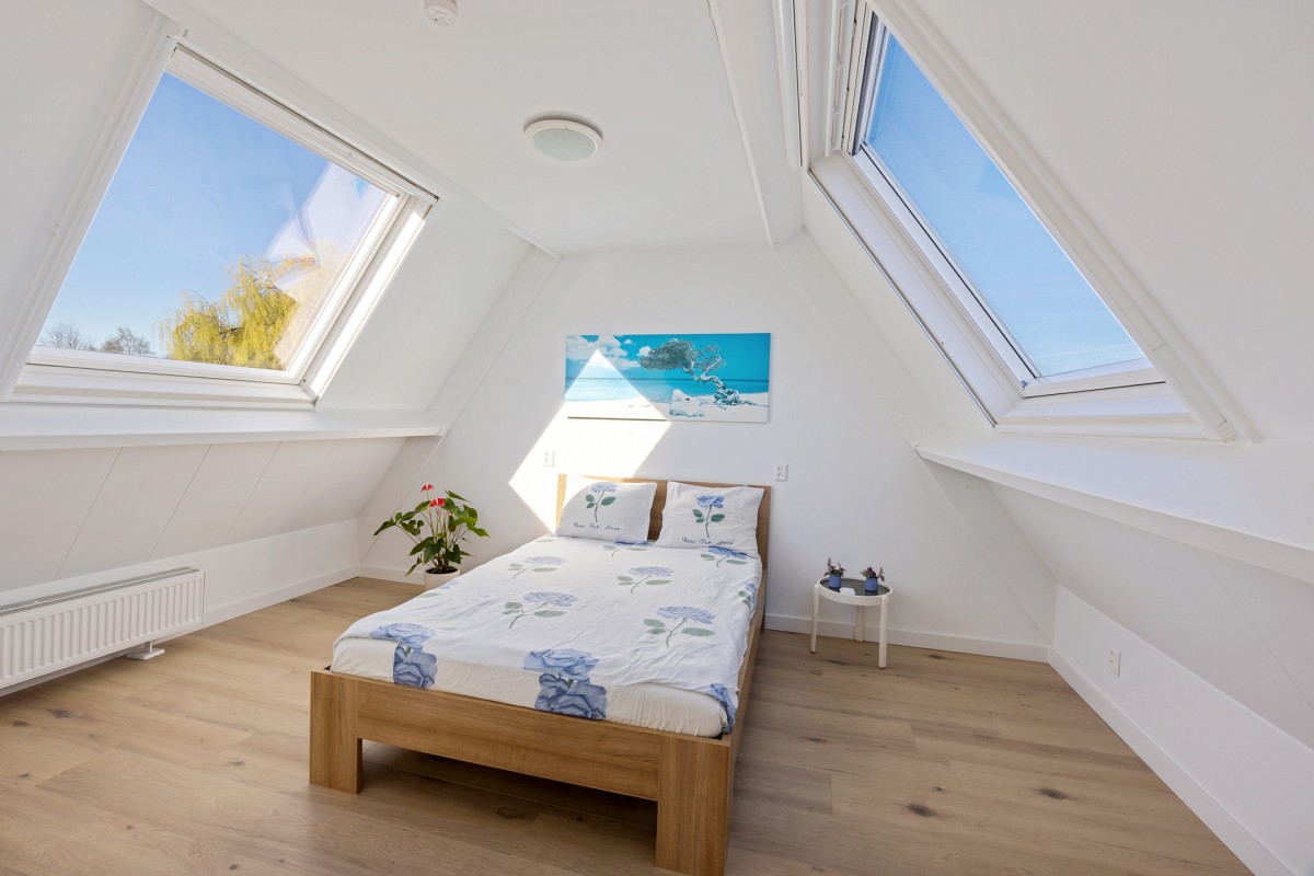 There are a total of two bedrooms on this floor. The spacious bedroom at the rear can easily be divided into two separate bedrooms. This room features a synthetic dormer window with an electrically operated roller shutter, ensuring optimal blackout and privacy. Ideal for those working irregular shifts. Additionally, the bedroom features a built-in wardrobe.