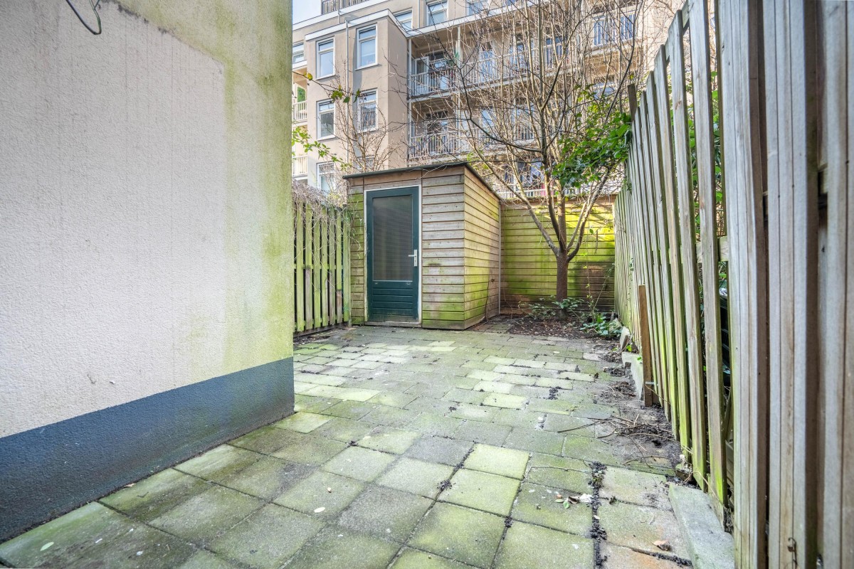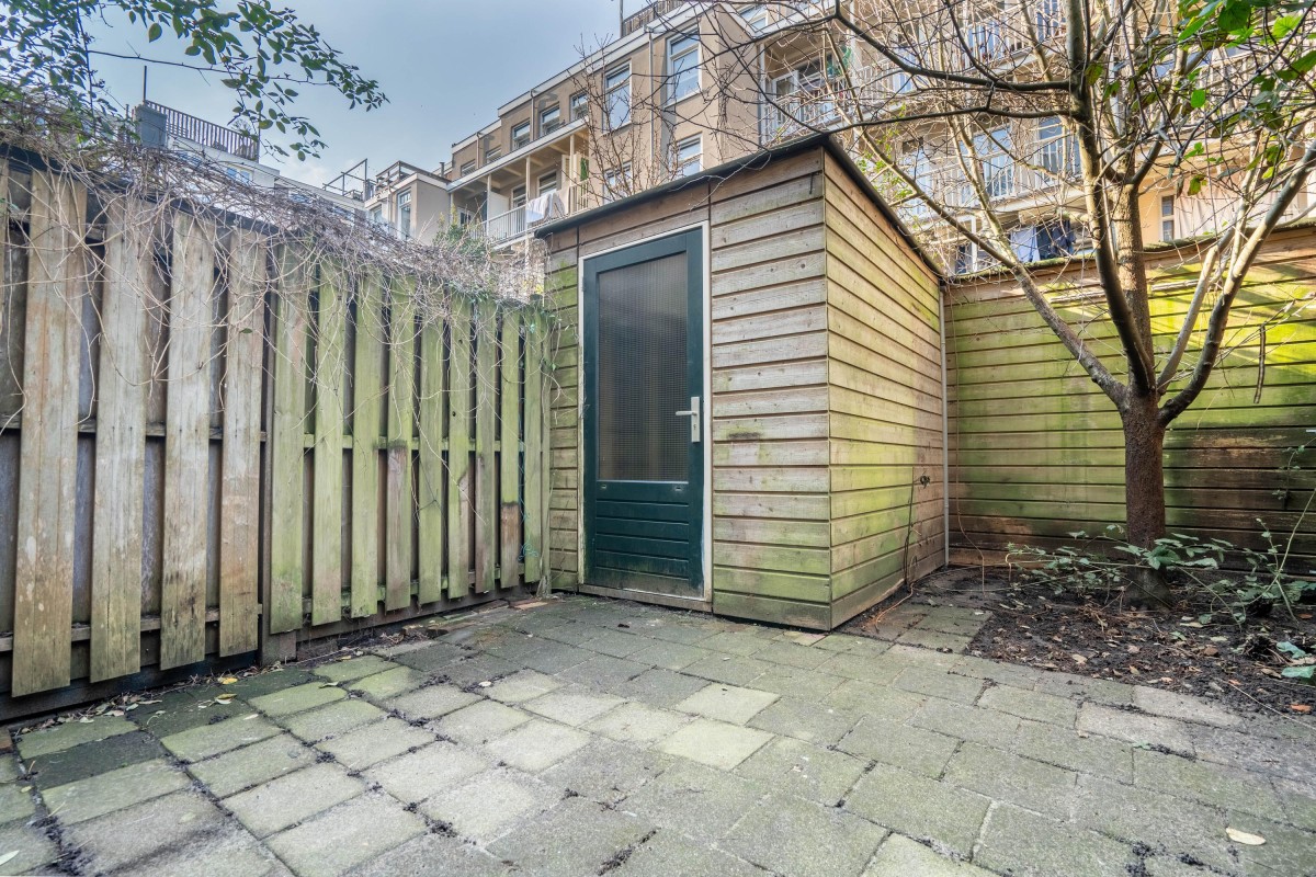 A major plus of this property is the lovely deep backyard of approximately 9 meters, spanning the full width of the plot. Here you can fully enjoy outdoor living. At the back of the garden is a spacious detached storage unit of approximately 5 m², offering ample space for bicycles, garden tools, and seasonal items.