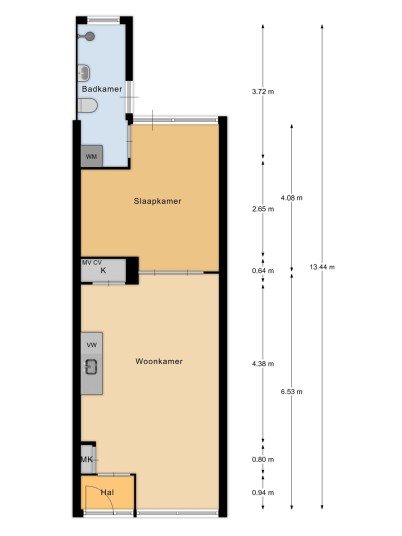 - Living area of 44.6 m² (NEN 2580 measurement certificate available);