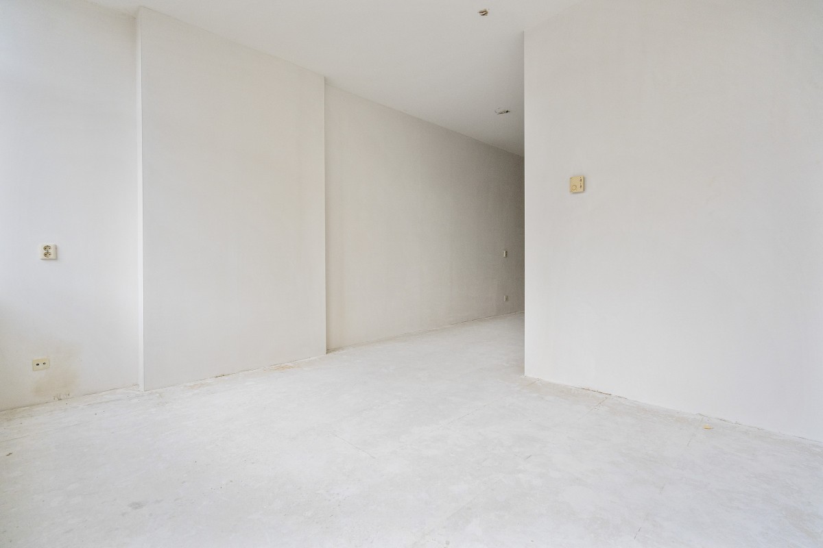 The apartment is located on the third floor and can be accessed via the communal staircase. Upon entering, you step directly into the bright living room, which benefits from two large front-facing windows. The open-plan kitchen is currently in shell condition and can be fully fitted to your own preferences.