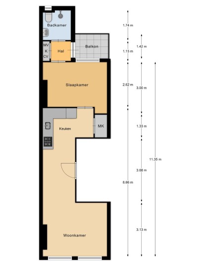 - Living area: 40.4 m² (measured according to NEN2580 certificate);