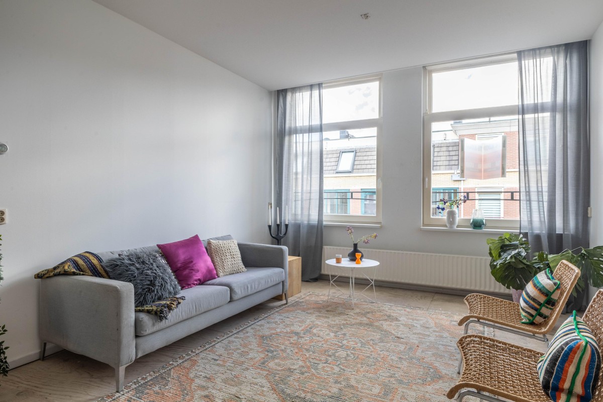Unique three-room apartment of 73.9 m², ideally located in the vibrant Staatsliedenbuurt, just a stone’s throw from the Westerpark and close to the Jordaan. This apartment features two south-facing balconies, a spacious living room, two bedrooms, and both an attic storage room and an additional storage space on the ground floor. Enjoy the lively atmosphere of the neighborhood, with all necessary amenities within easy reach!