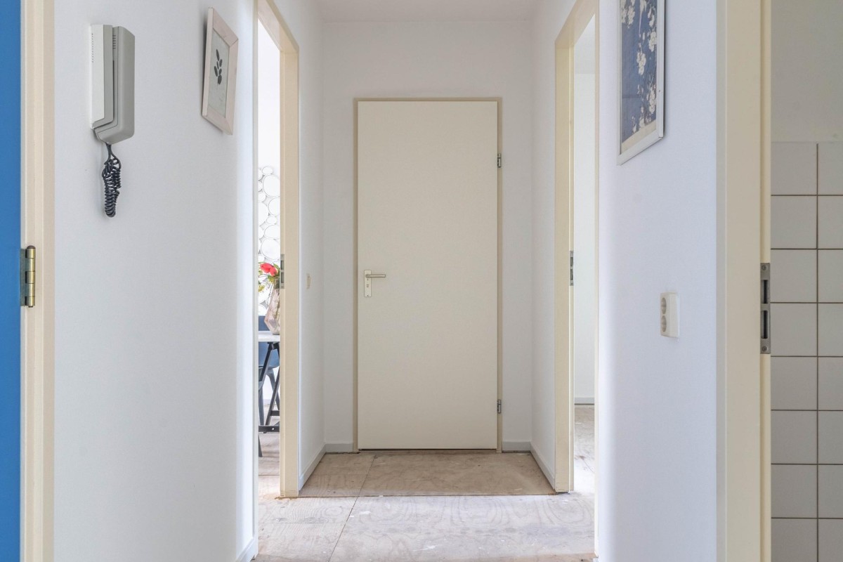 The apartment is located on the third floor and can be reached via the communal staircase. You enter into a hallway that provides access to multiple rooms.
