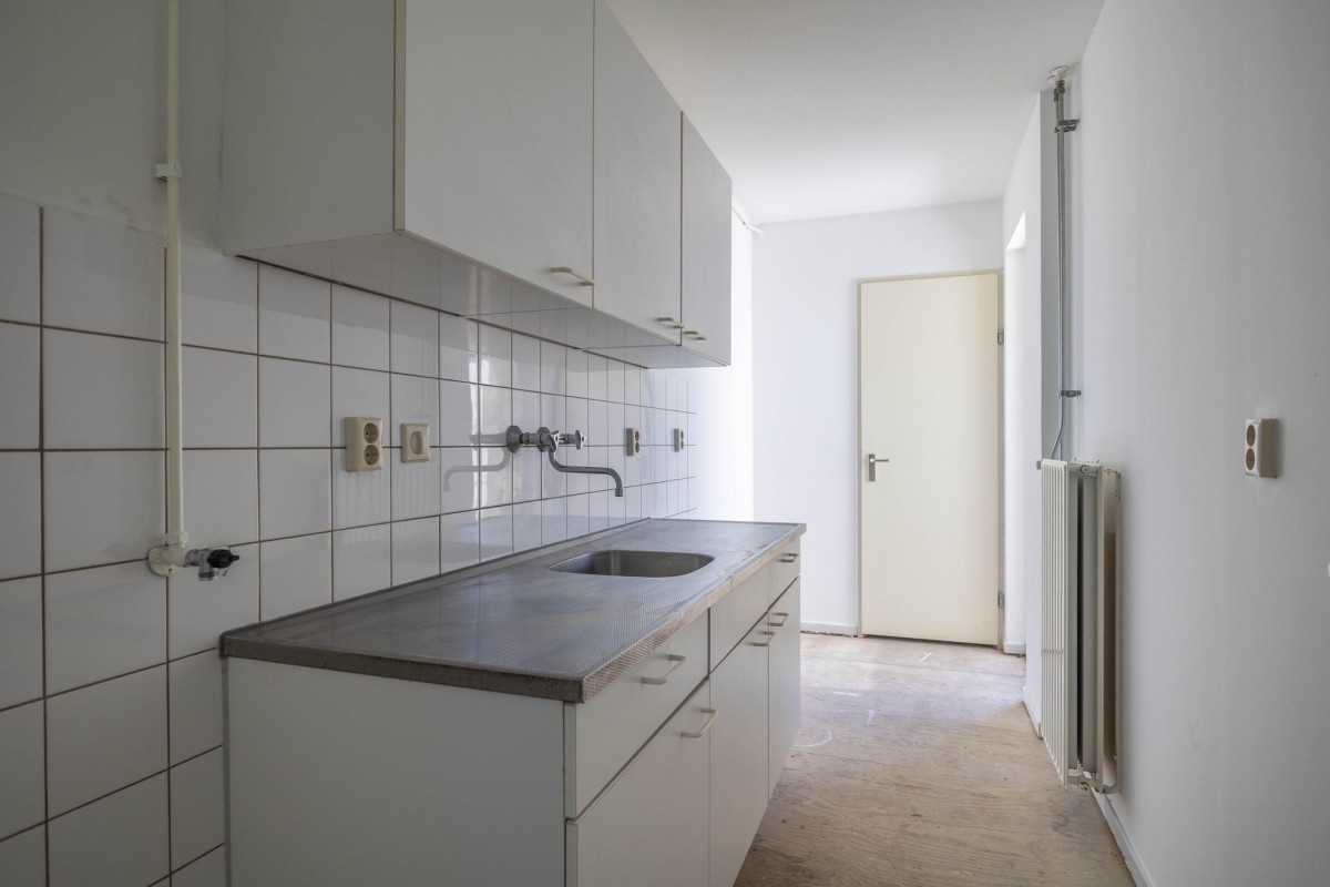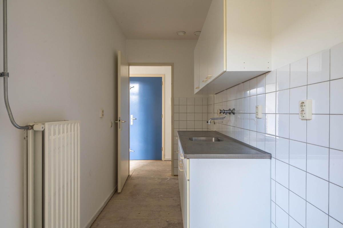 Lees verderAt the front of the apartment is the generous living room of approximately 26 m², offering ample space for both a seating and dining area.