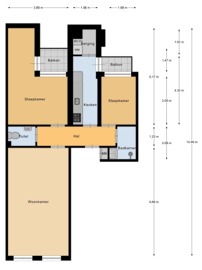 - Two south-facing balconies;