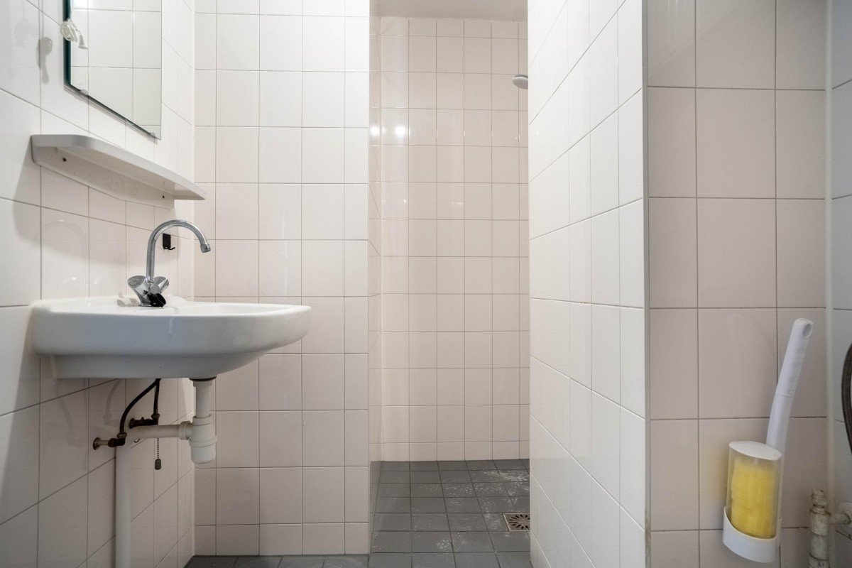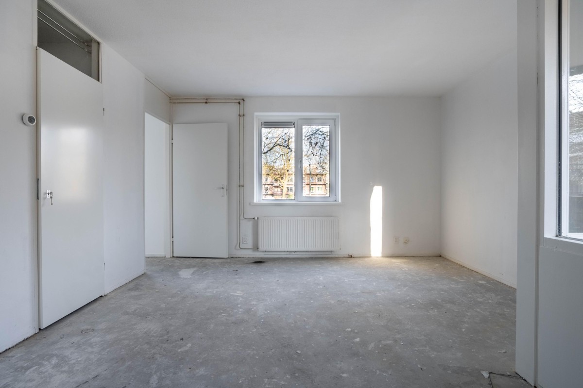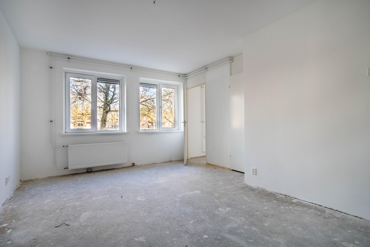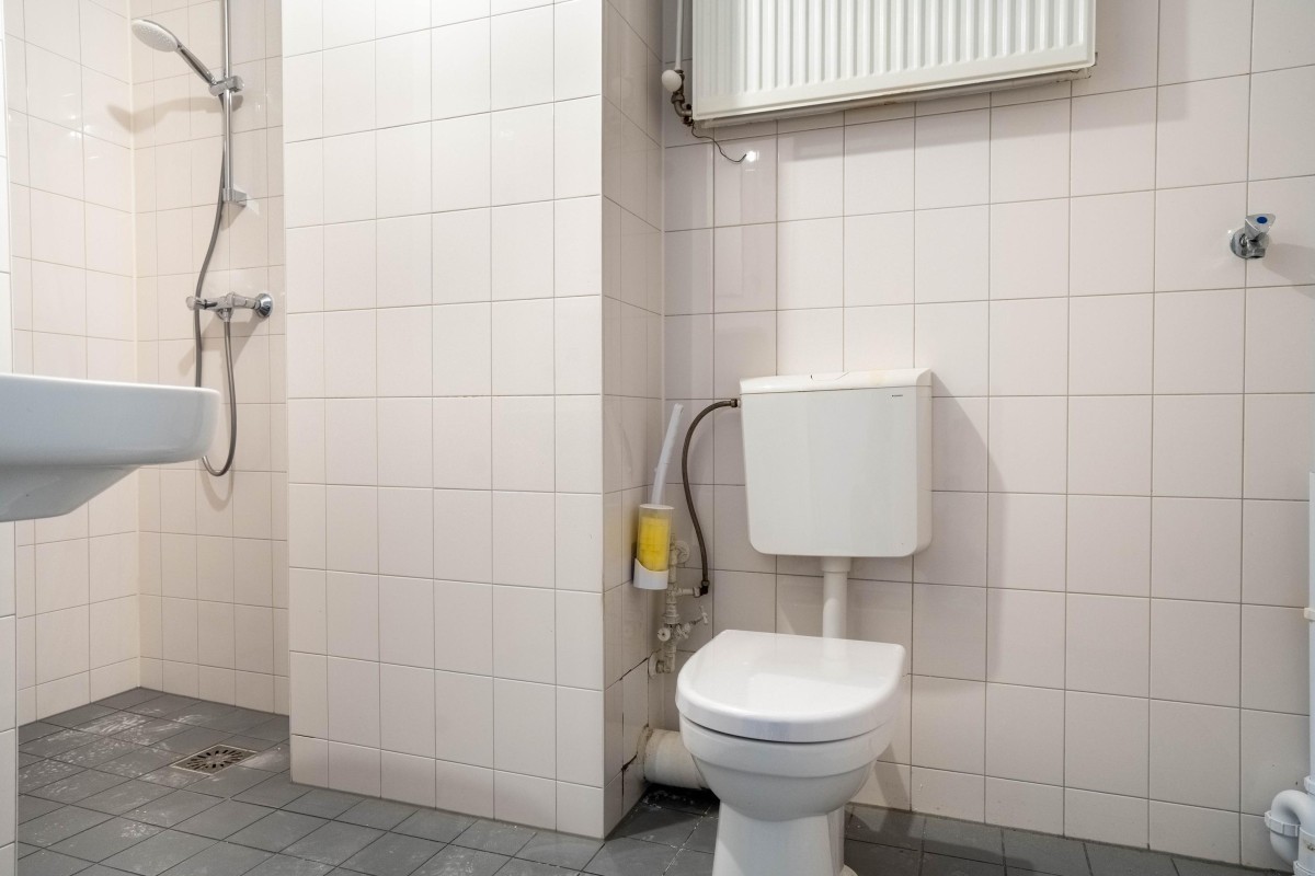 The kitchen is still in its basic state, allowing you to arrange it completely according to your own preferences. The bedroom is located on the other side of the apartment and also has storage space, where the central heating boiler (Intergas, built in 2018) is installed.