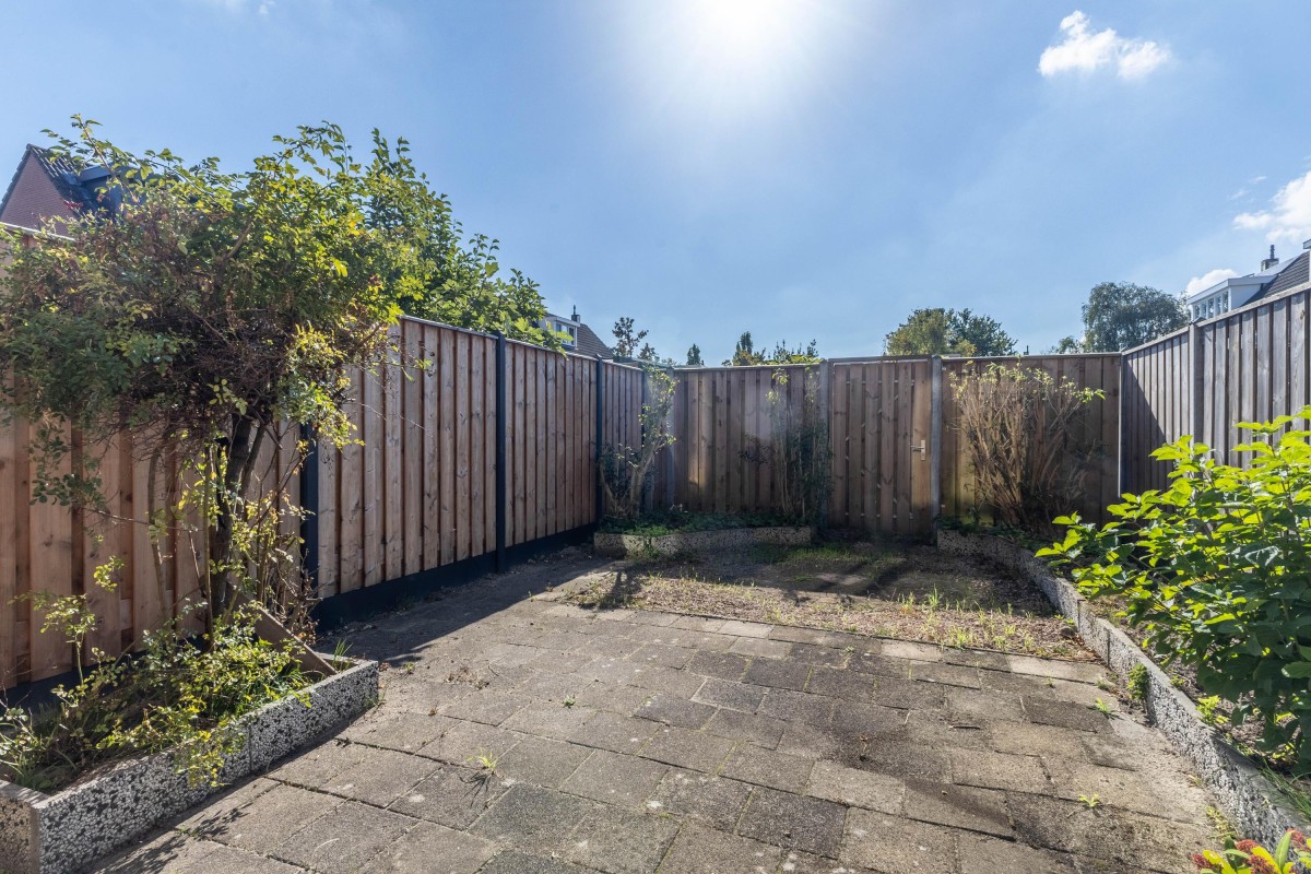 At the rear of the property is the approximately 44 m² large south-facing garden, with access at the back. Here, you can enjoy the sun and the surrounding greenery throughout the day.