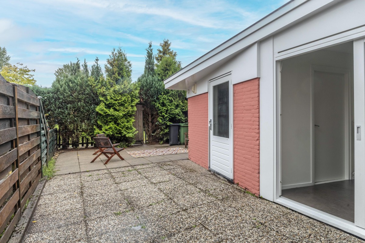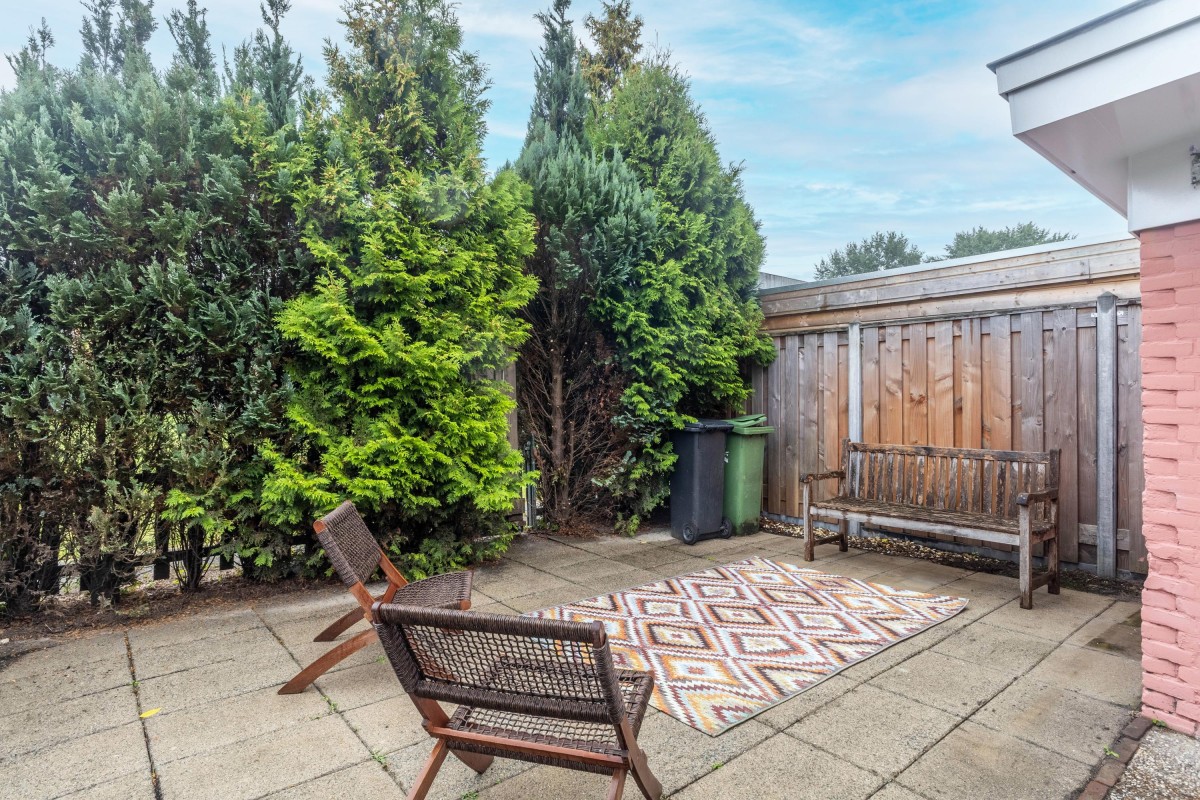 The backyard of approximately 44 m² is southeast-facing, offering plenty of sun and privacy. Here you can enjoy outdoor living all year round.