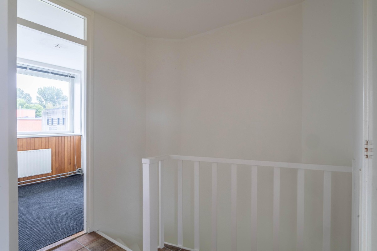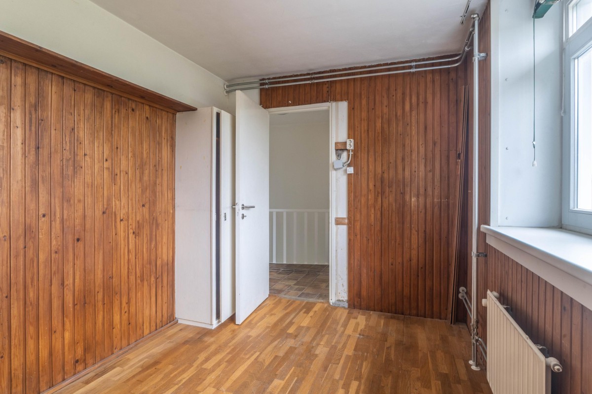 Via the staircase in the hall, you reach the first floor. From the landing, all rooms are accessible. At the front are two bedrooms with large windows, providing plenty of natural light and a pleasant view of the greenery.