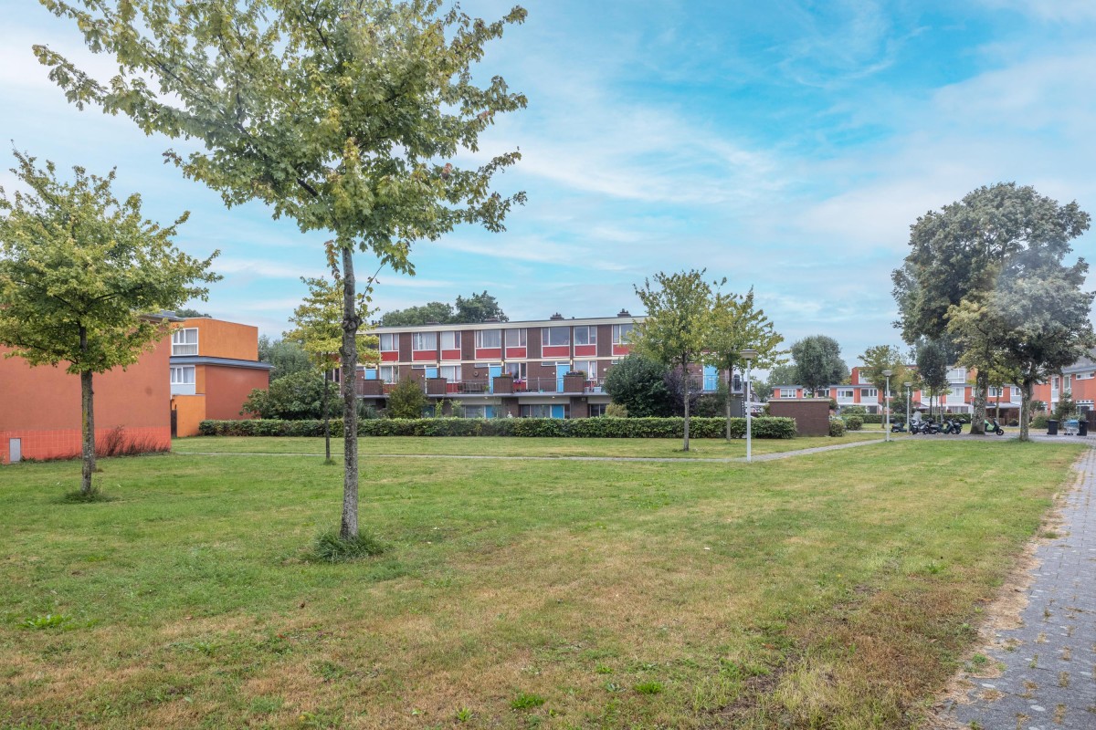 Willem Mulierhof 13 is located in a quiet residential area within the urban renewal district of Geuzenveld Zuid. This attractive and spaciously designed neighborhood features its own shopping center at Lambertus Zijlplein, which includes Albert Heijn, Vomar, Kruidvat, and various specialty stores. Both Plein '40-'45 and Osdorpplein—with all their amenities—are also within cycling distance of the home.