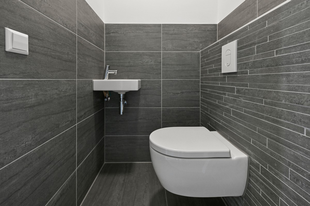 Through your private entrance, you enter the hallway, which also features a modern toilet with a washbasin and mechanical ventilation. From the hallway, you have access to the kitchen, centrally located in the home. This kitchen offers ample workspace and is equipped with a neat setup, including a sink island, a four-burner induction cooktop, an oven (replaced in 2025), a microwave, a fridge/freezer combination, and an extractor hood.