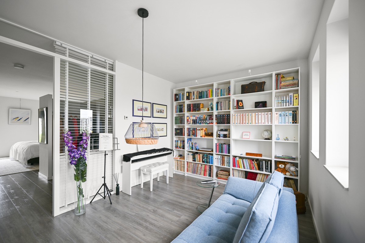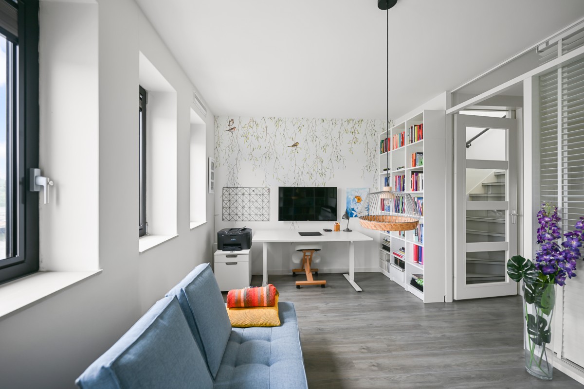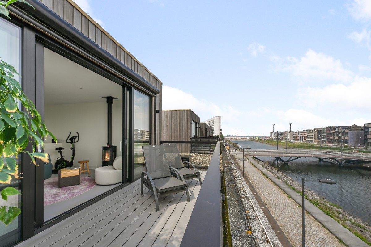 The third and top floor is designed as an open, multifunctional space with direct access to the spacious rooftop terrace and a remotely operated electric sunshade. Here, you can enjoy a beautiful, unobstructed view over the water. With the existing kitchen and cozy fireplace, this floor is ideal for various purposes: home office, workspace, studio, hobby room, guest bedroom, or relaxation area. A space that fully adapts to your needs and lifestyle.