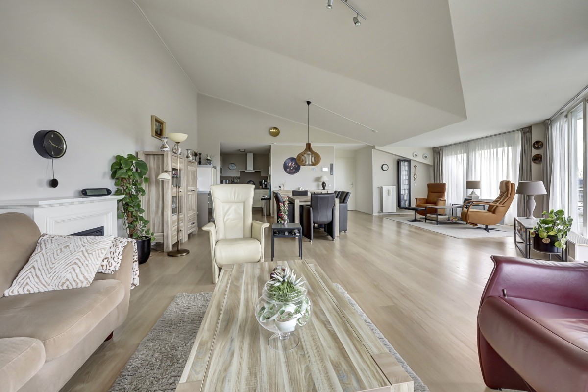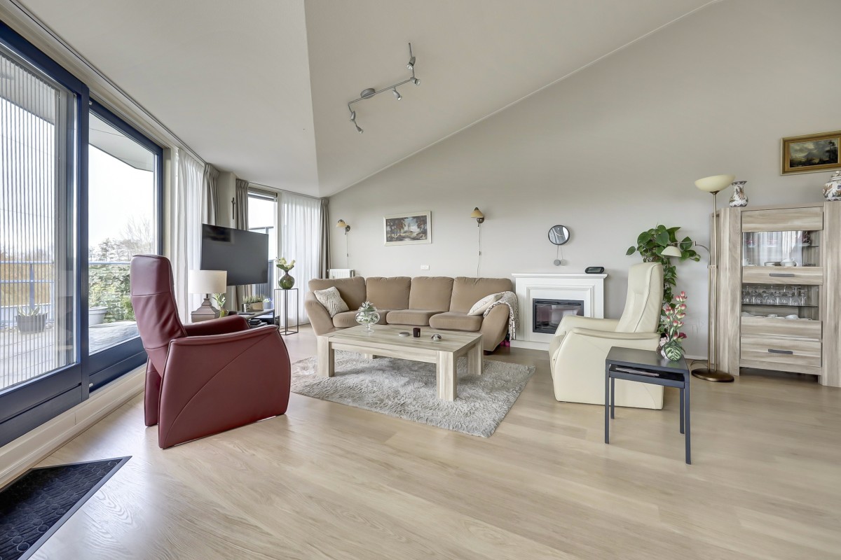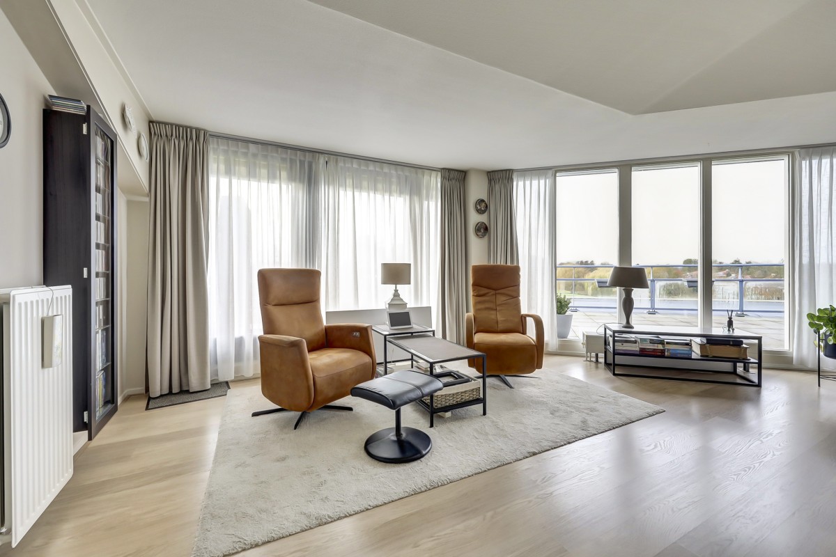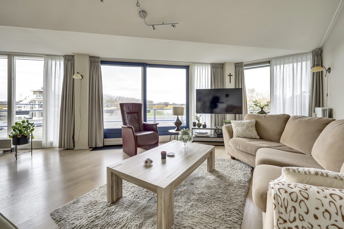 Een ruim penthouse op een prachtige locatie! Dit penthouse kenmerkt zich door het vele licht, prachtige uitzicht en de moderne afwerking. Het appartement beschikt over een royaal dakterras welke voorzien is van glasschermen en op het zuidwesten is gelegen. In het souterrain bevinden zich de privé berging en twee eigen parkeerplaatsen. Het souterrain is bereikbaar middels een verwarmde oprit en een op afstand bedienbare deur.