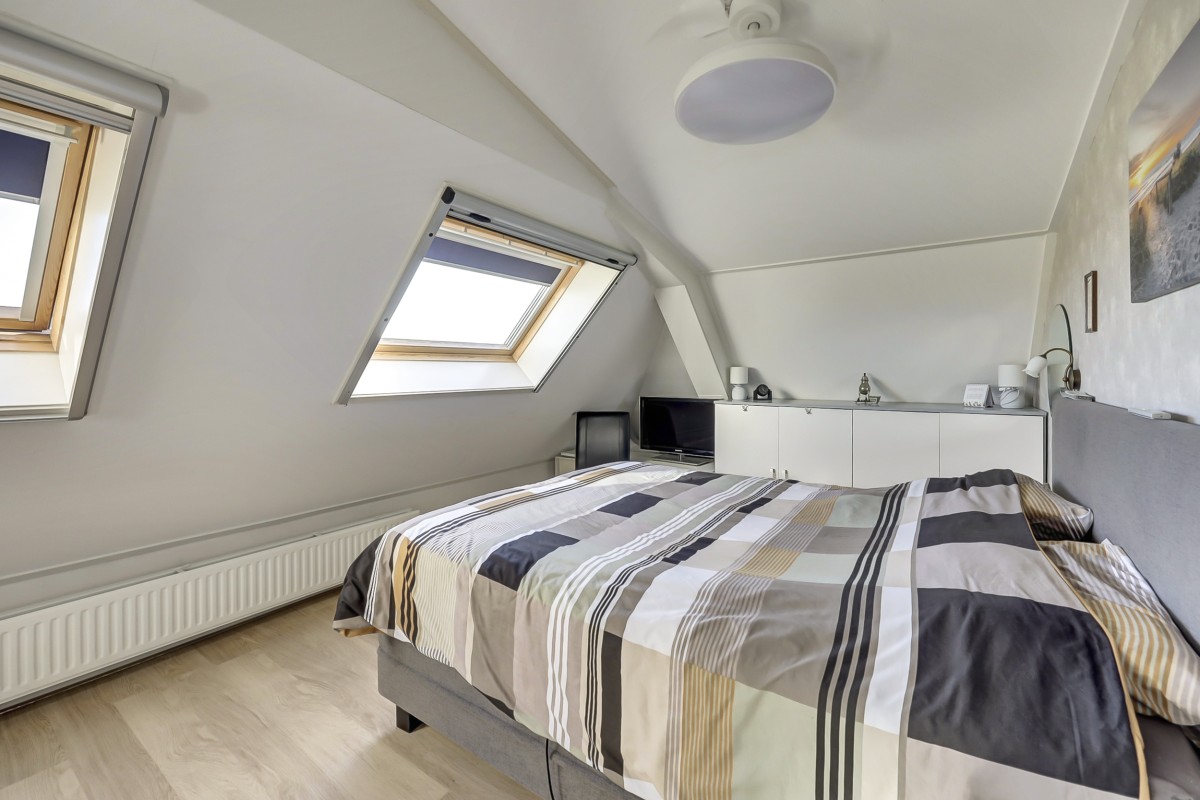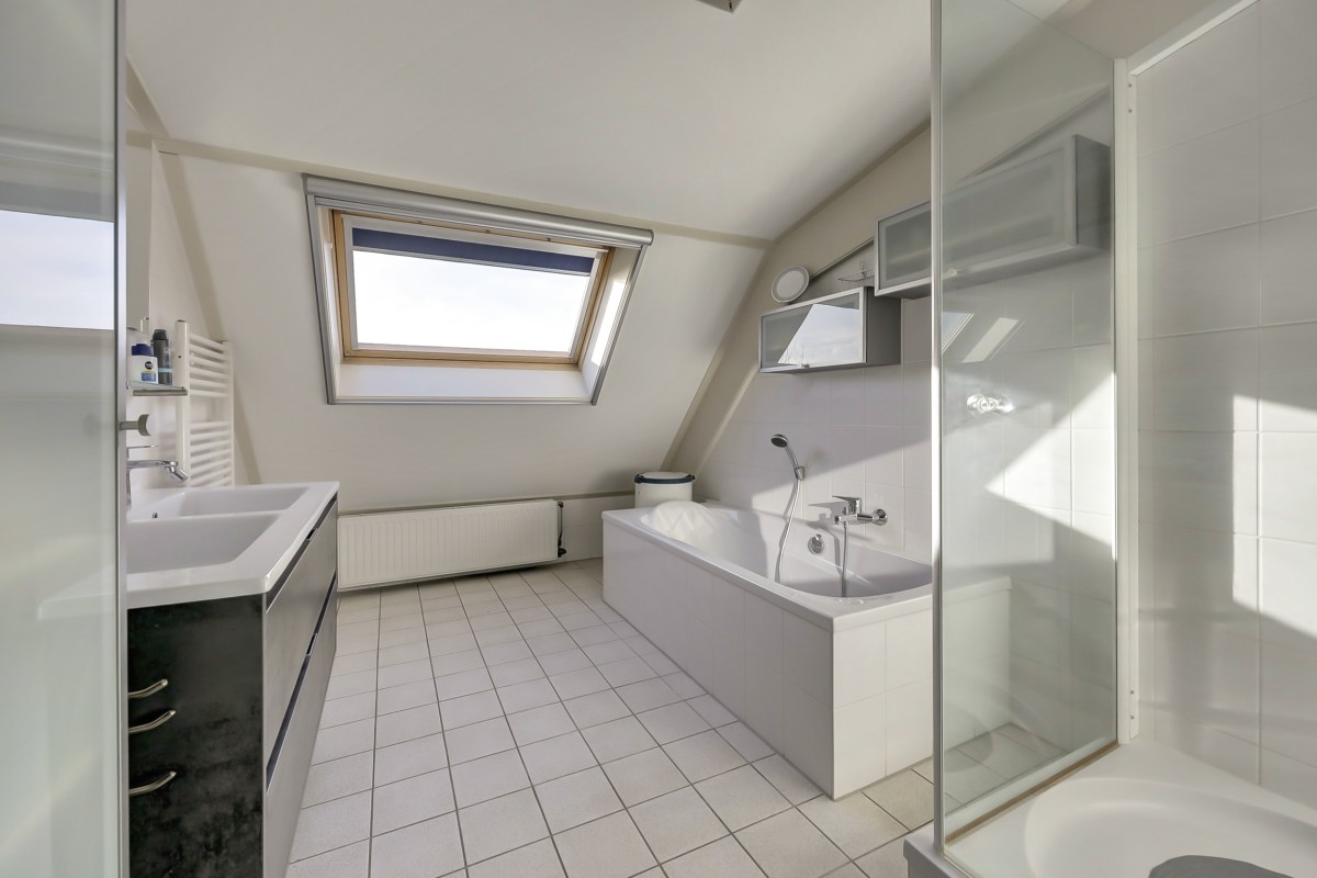 De slaapkamers zijn ruim en voorzien van Velux dakramen. Deze vele Velux ramen maken ook deze ruimten heerlijk licht. De badkamer is voorzien van een lichte tegels, een ligbad, een douche met cabine en dubbele wastafel met meubel.