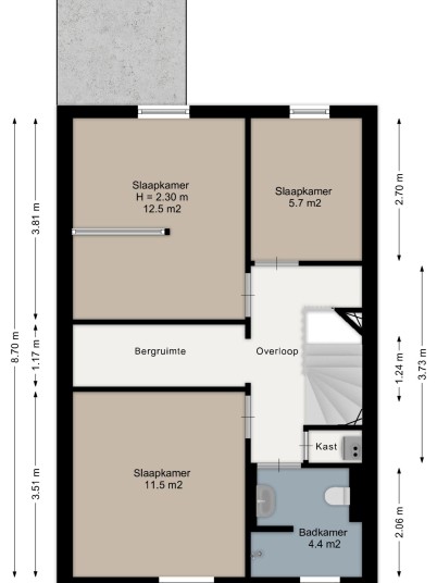 The staircase leads to the first floor, where the landing provides access to the bedrooms and the bathroom.