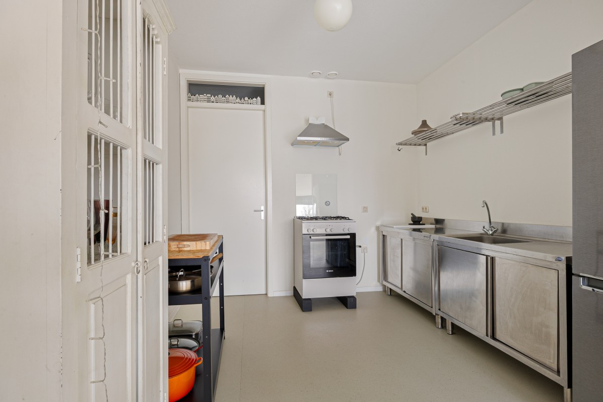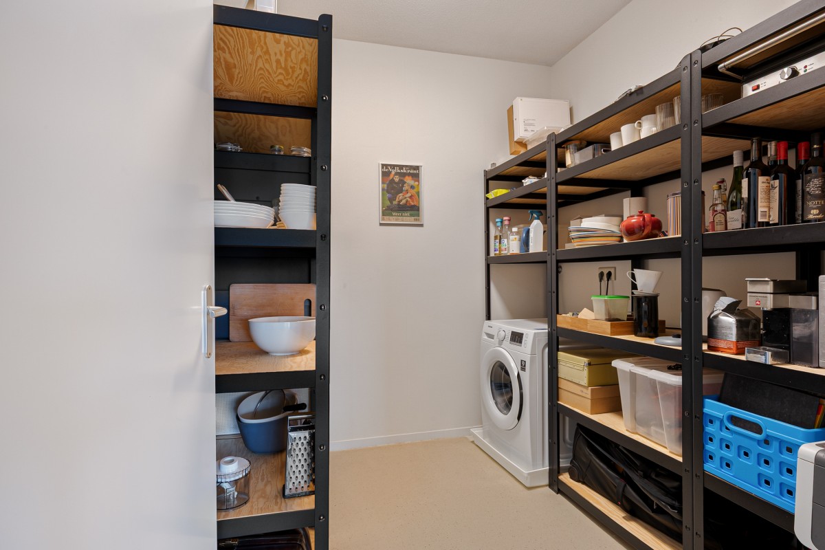 From the kitchen, you have access to the spacious storage/utility room. This offers ample storage space for supplies or cleaning supplies, for example. You'll also find the washer and dryer here, which is extra practical for housekeeping.