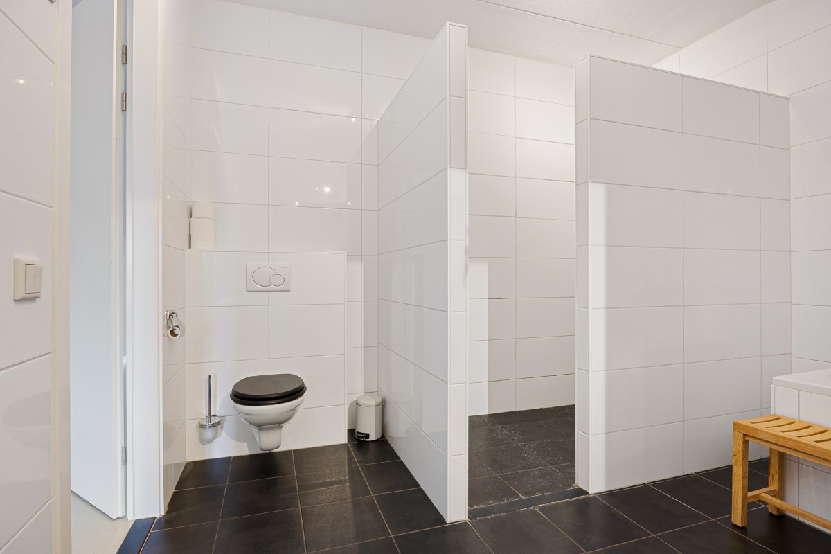 Upon entering, you will find the hallway, which provides access to all rooms of the apartment. The hallway also houses the meter cupboard, including fiber optic connection, and a wall-hung toilet with a hand basin.