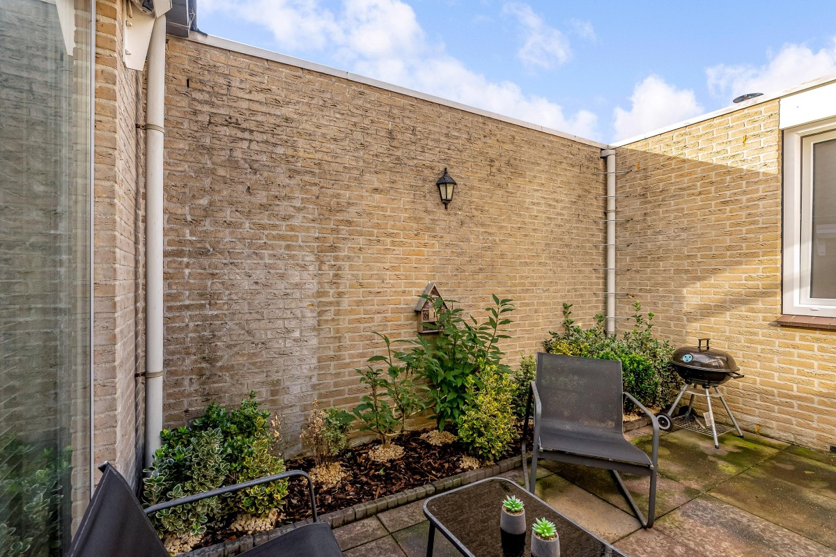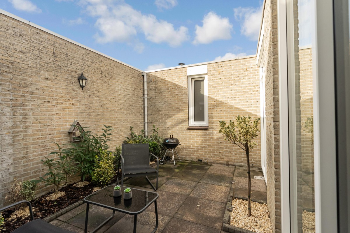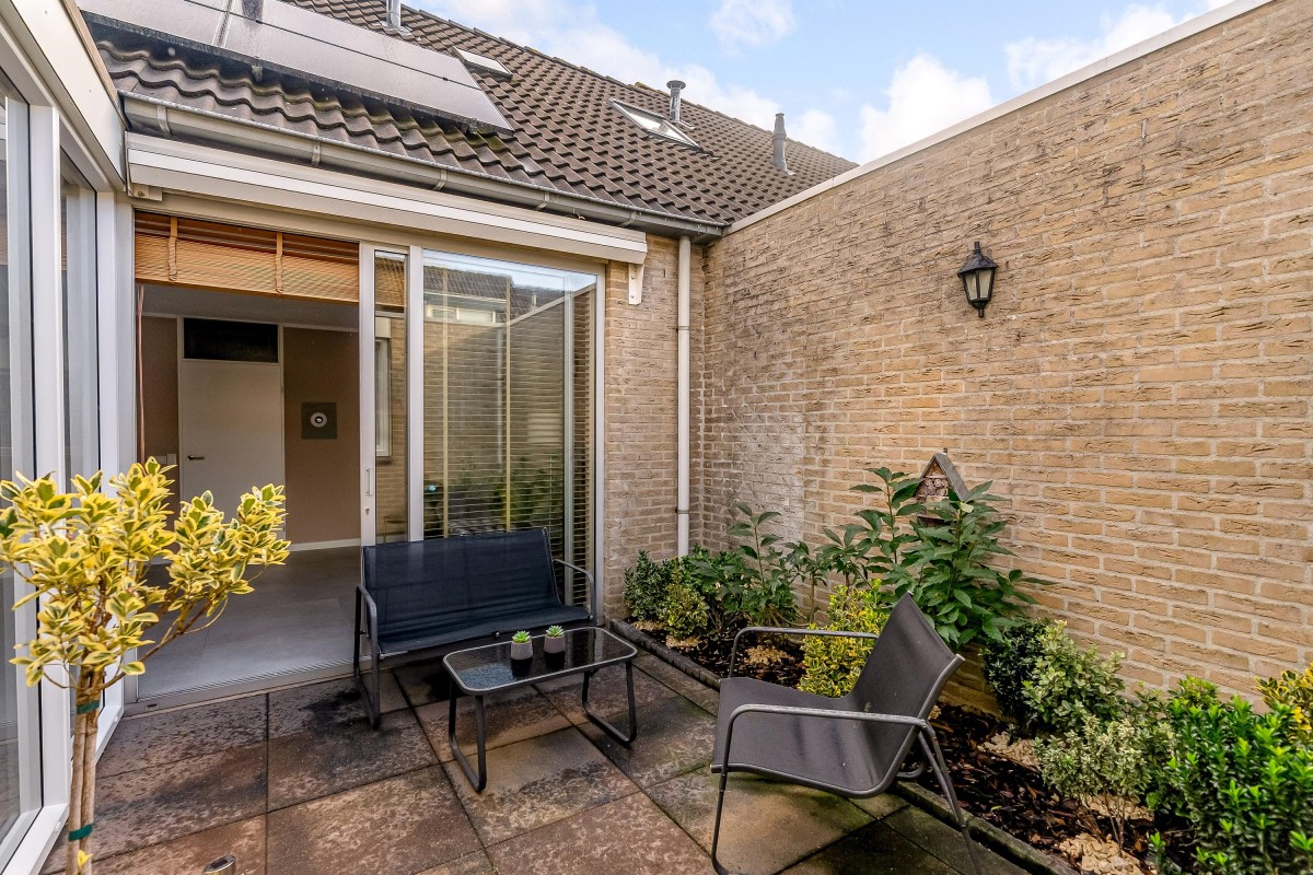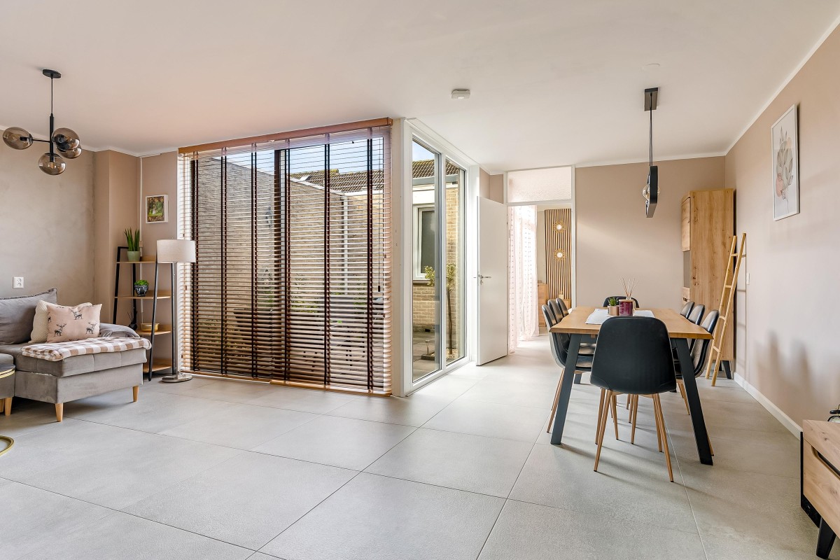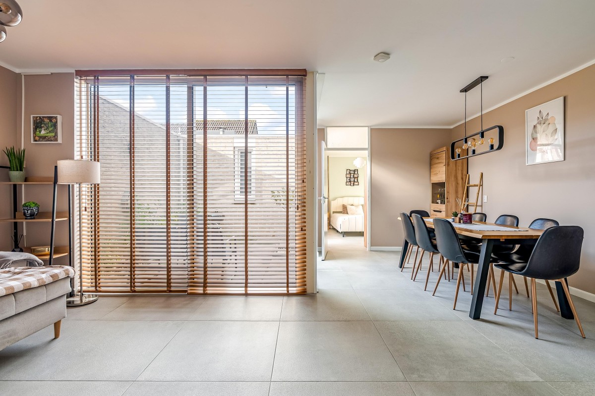 Through the sliding doors, you enter the low-maintenance patio garden, located on the southwest. Here, you can enjoy the sun throughout the afternoon and even in the evening. An electric awning is available for extra comfort.