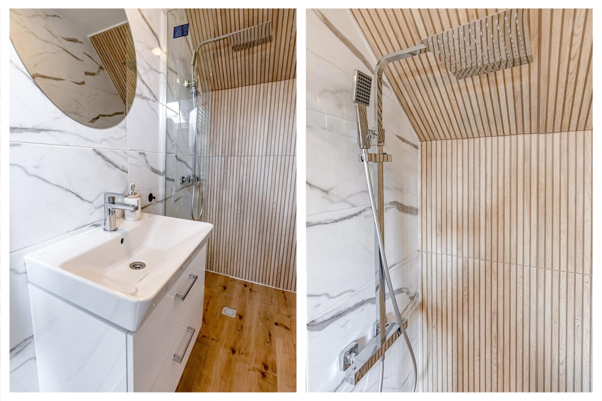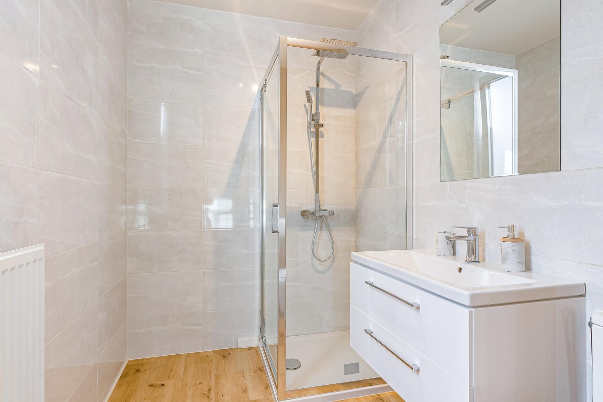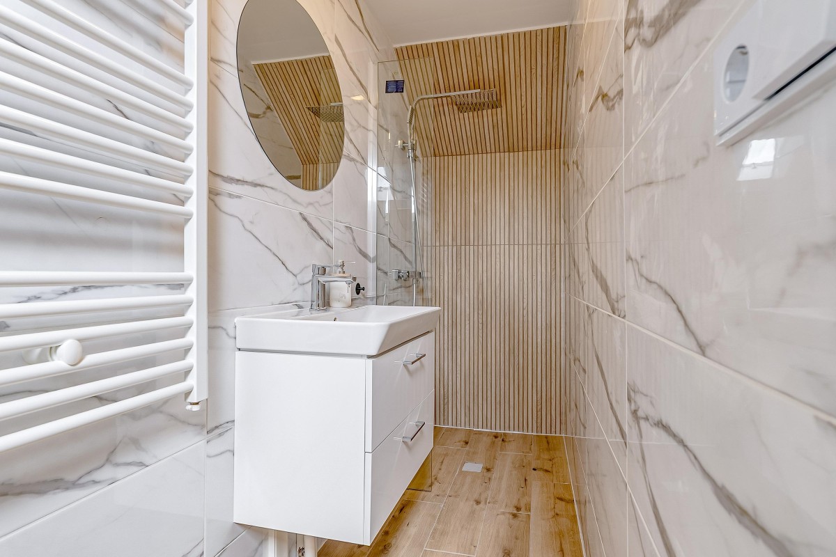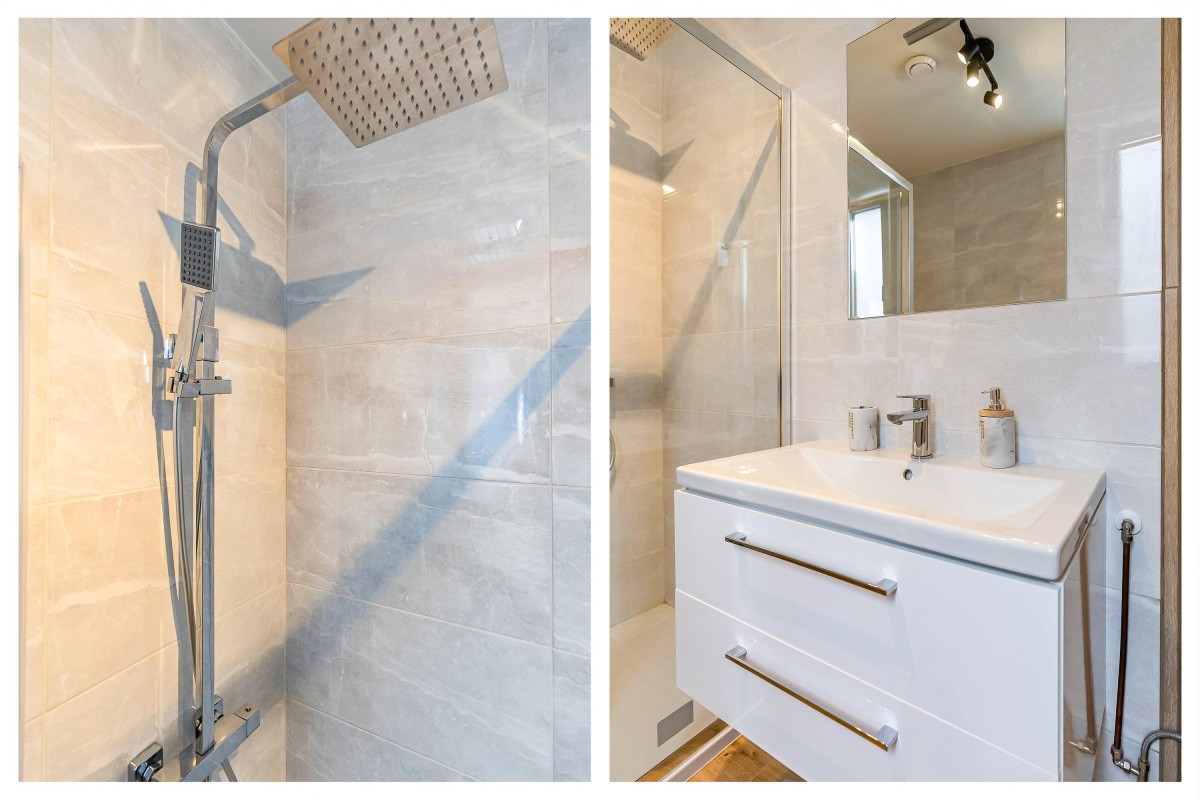 The bathroom was completely renovated in 2025 and is equipped with a shower and washbasin.