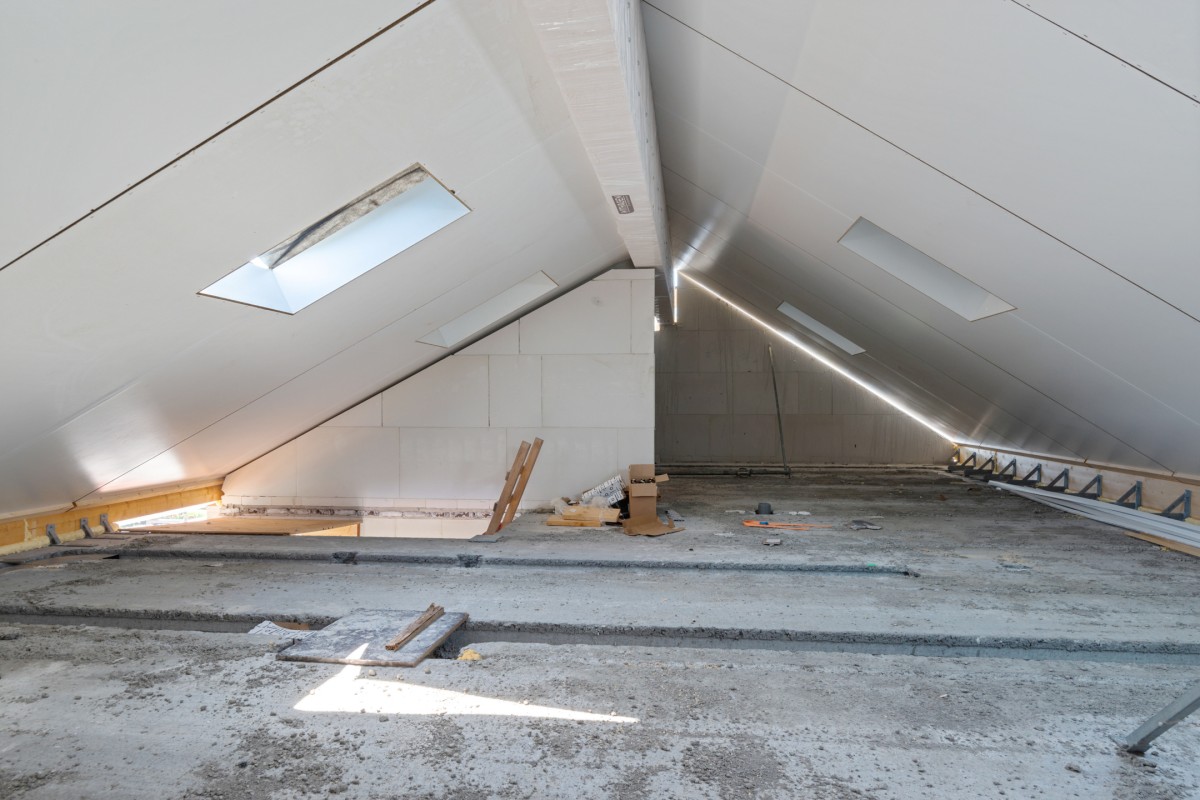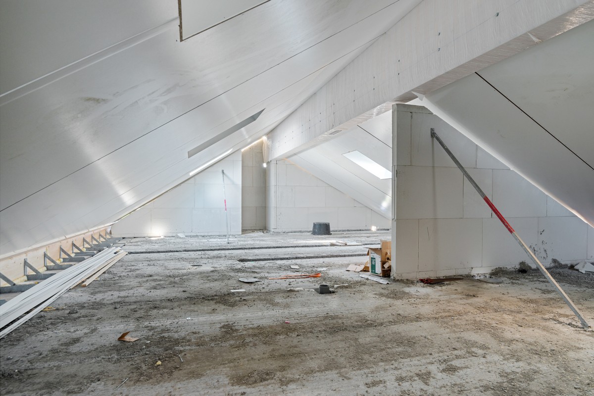 De ruime zolderverdieping biedt volop mogelijkheden om naar wens in te delen. Er zijn twee ruime slaapkamers gevestigd met een mogelijkheid voor een extra badkamer. Maar denk bijvoorbeeld ook aan een kantoor aan huis of een sportruimte. Hier bevinden zich ook de aansluitingen voor wasmachine en droger.