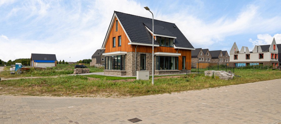 This recently built villa is located in the modern Warande district, on the corner of Zonnedauwlaan and Orchideelaan, along the Torenvalktocht canal.