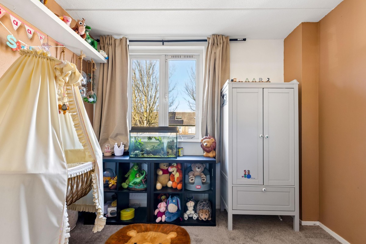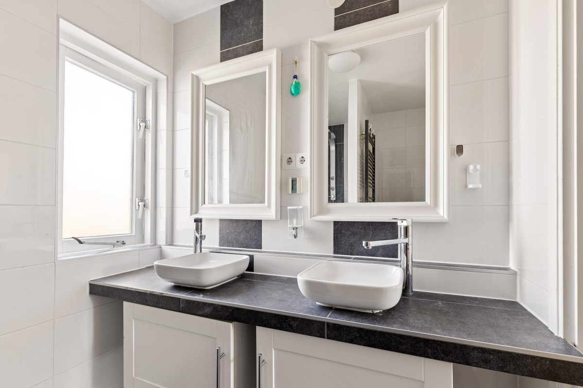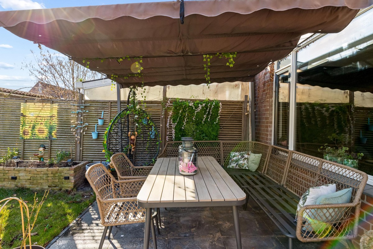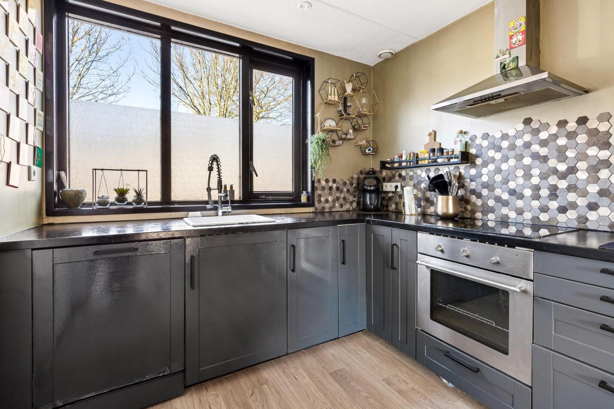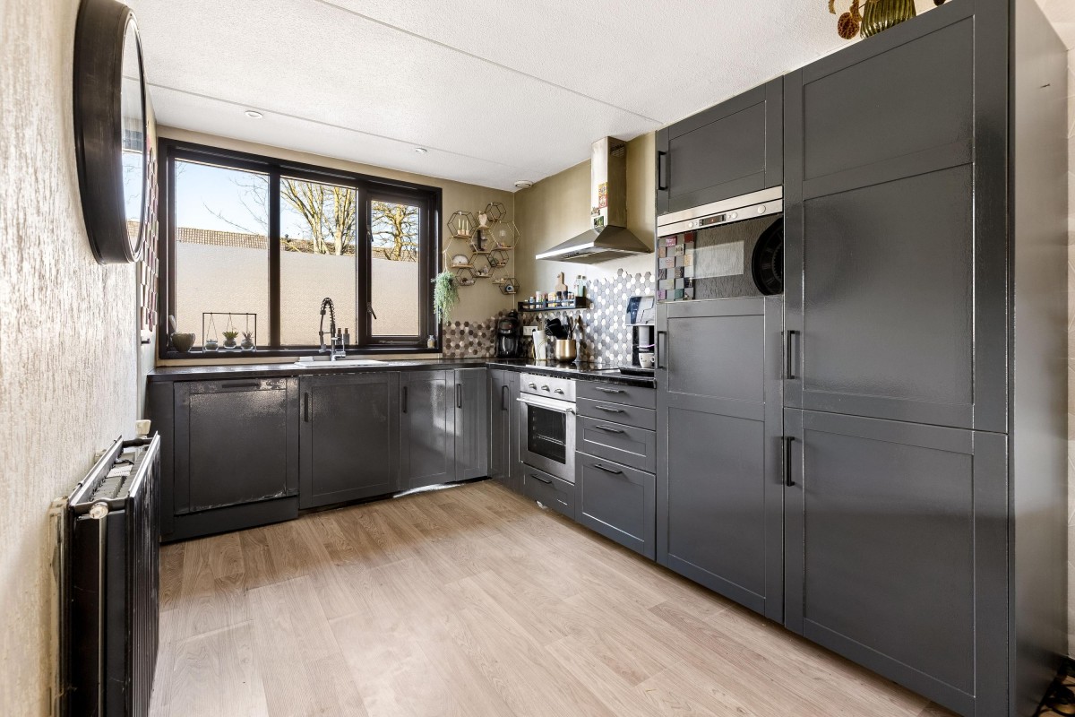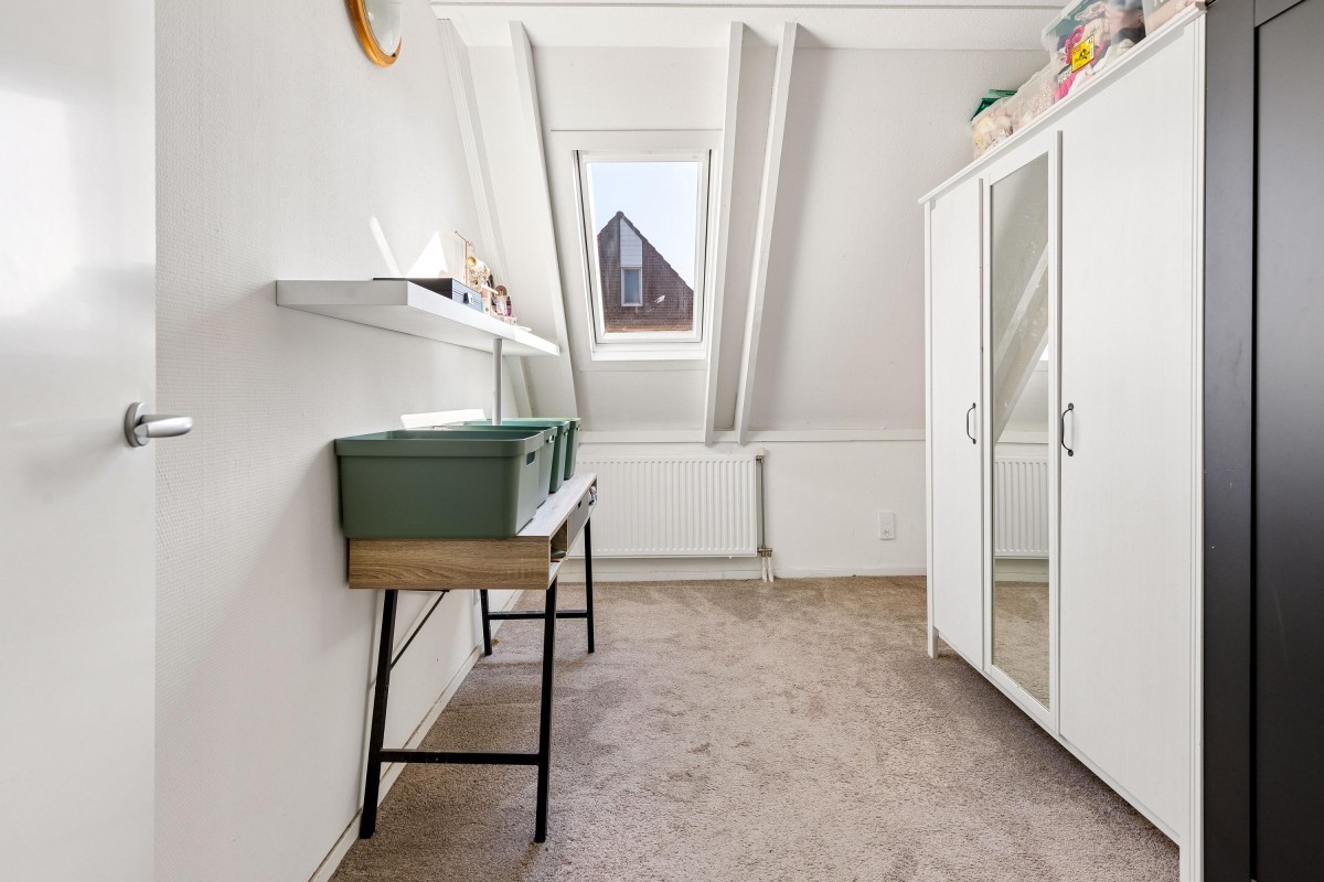 The bright living room with open kitchen forms the heart of the home. Large windows allow plenty of natural daylight to enter, creating a warm and pleasant atmosphere. From the living room you have direct access to the backyard. There is also a practical under-stairs storage cupboard for extra storage space.