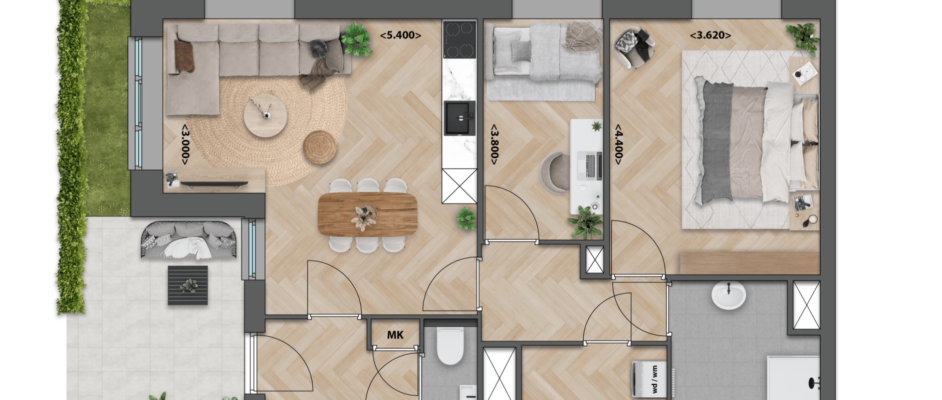 – Variants with a terrace or balcony
