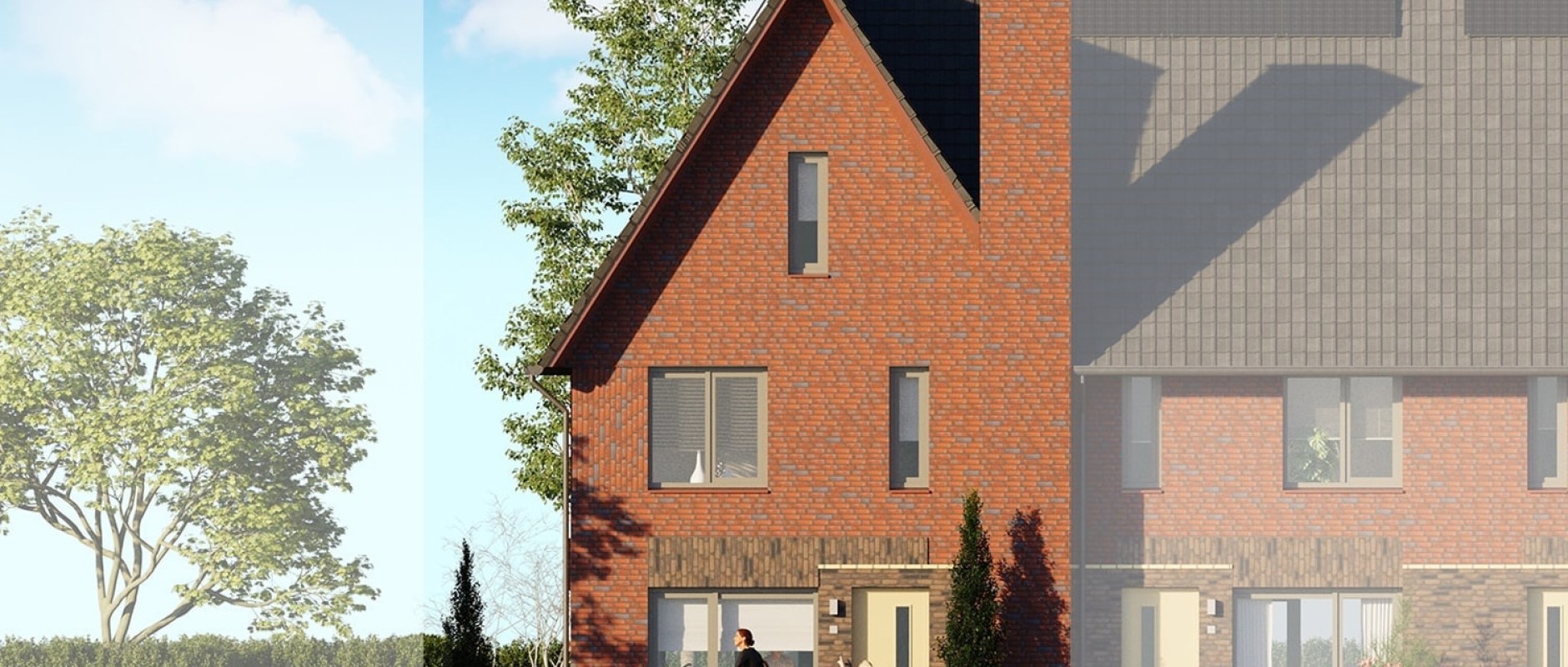 Deze woningen zijn beschikbaar in diverse uitvoeringen. Een kenmerkend en stijlvol detail is de schoorsteen op de voorgevel, die zorgt voor een karakteristieke uitstraling. Binnen geniet je van een grote woonkeuken, ideaal voor gezellige diners of lange ontbijtochtenden. De ruime woonkamer sluit hier naadloos op aan en biedt volop leefruimte voor het hele gezin.