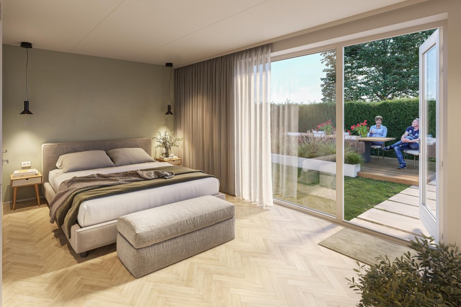 Via de entreehal met toilet stap je de lichte leefruimte in, met achter in de woning een open keuken. Vanuit hier heb je zicht op je de tuin die grenst aan de bosrand. Dat is nog eens fijn uitzicht tijdens het koken. Aan de voorkant van het huis is plek genoeg voor een fijne zithoek. Uniek aan deze woning is de slaapkamer op de begane grond met aangrenzende badkamer, compleet uitgerust met toilet, douche en wastafel. In deze woning kan je gelijkvloers wonen wat het een ideaal huis maakt voor gezinnen die flexibiliteit zoeken. Of voor wie nu alvast vooruit wil plannen.