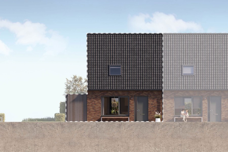 A charming, lifelong-livable home around a green courtyard. This compact yet cleverly designed house is located around a car-free courtyard, where children can play safely, and neighbors can meet each other. With a bedroom and fully equipped bathroom on the ground floor, this home is suitable for all stages of life.