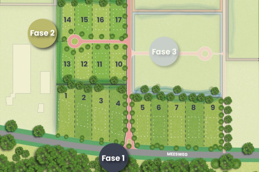 Fase 2 bestaat uit 8 grote kavels van ruim 1500 m2. De eerste inschrijftermijn is gesloten, het is nu alleen nog mogelijk om in te schrijven op de reservelijst via de website.
