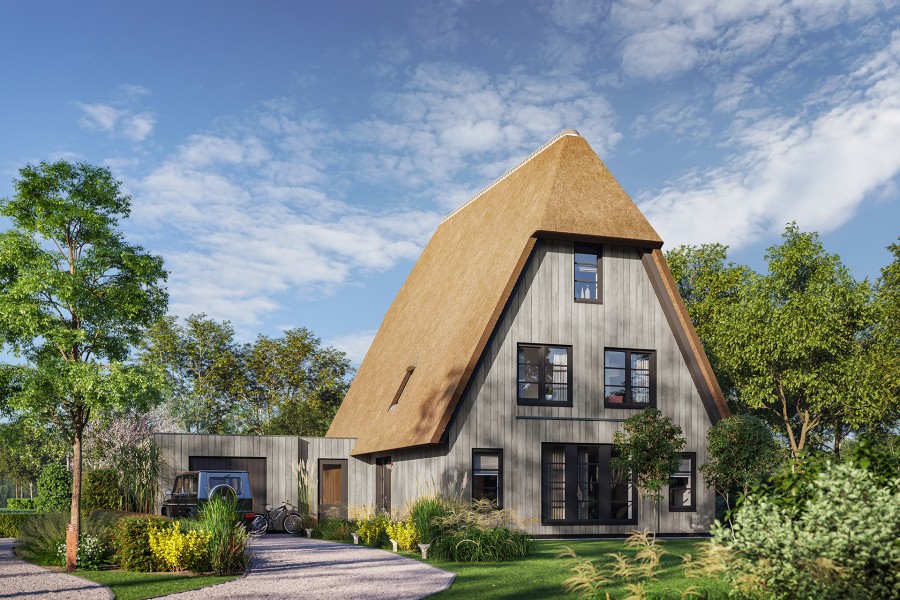 Choose from various types of villas and a careful selection of the best materials. Will it be white keim plaster or a gray-brown façade brick? Or with the addition of wood to the façade? A thatched roof or perhaps roof tiles? You also get to choose the color of the hardwood window frames and fascia boards. Together with the architect, you'll create your dream villa. The convenience of a well-thought-out architectural home with all the space to truly make it your own.