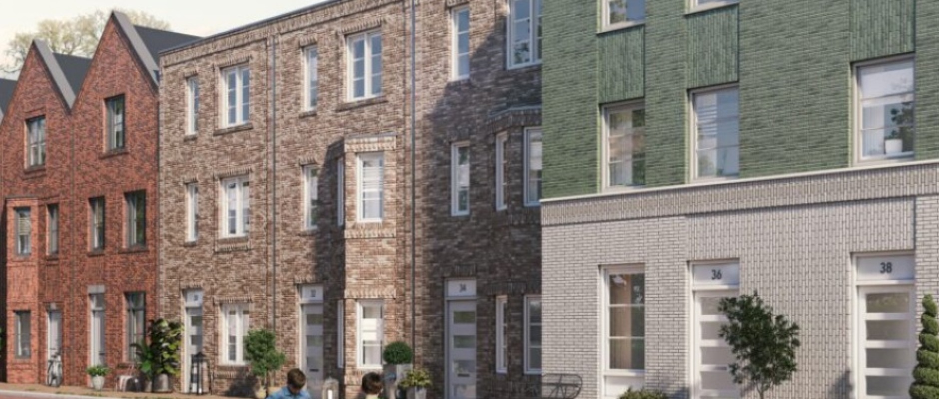 De industriële architectuur met rijk gedetailleerd metselwerk, imposante kozijnen en een herhalende maatvoering geeft NXT Avenue een robuuste uitstraling. De combinatie van stoere gevels en veel groen zorgt voor een levendige, maar ontspannen woonomgeving.