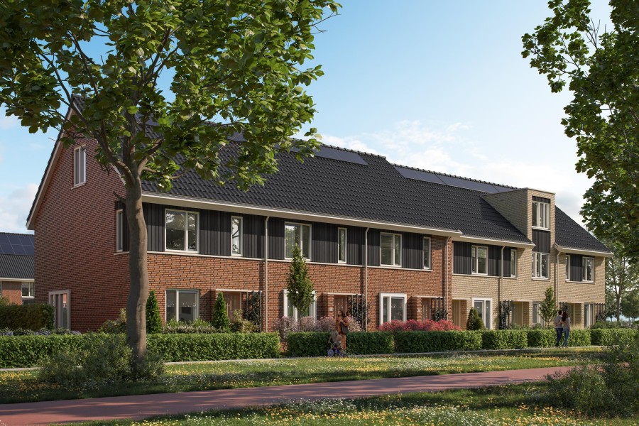 Maak kennis met woningtype Bies. Deze rijwoningen staan aan de rand van het plangebied georiënteerd, op De Zuid.