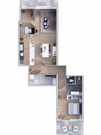 • 2 slaapkamers;