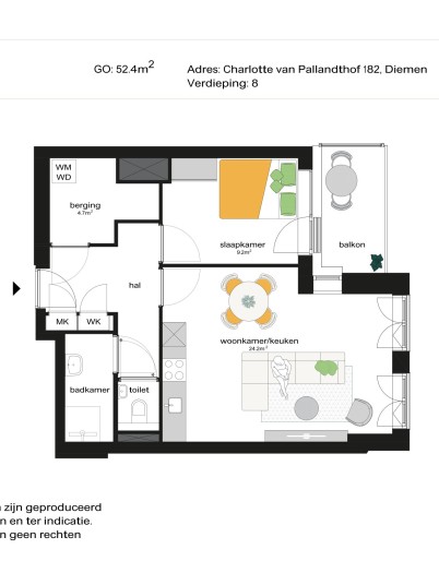 Alle informatie met betrekking tot de woning is met zorg samengesteld. Deze is echter indicatief en er kunnen geen rechten aan ontleend worden.